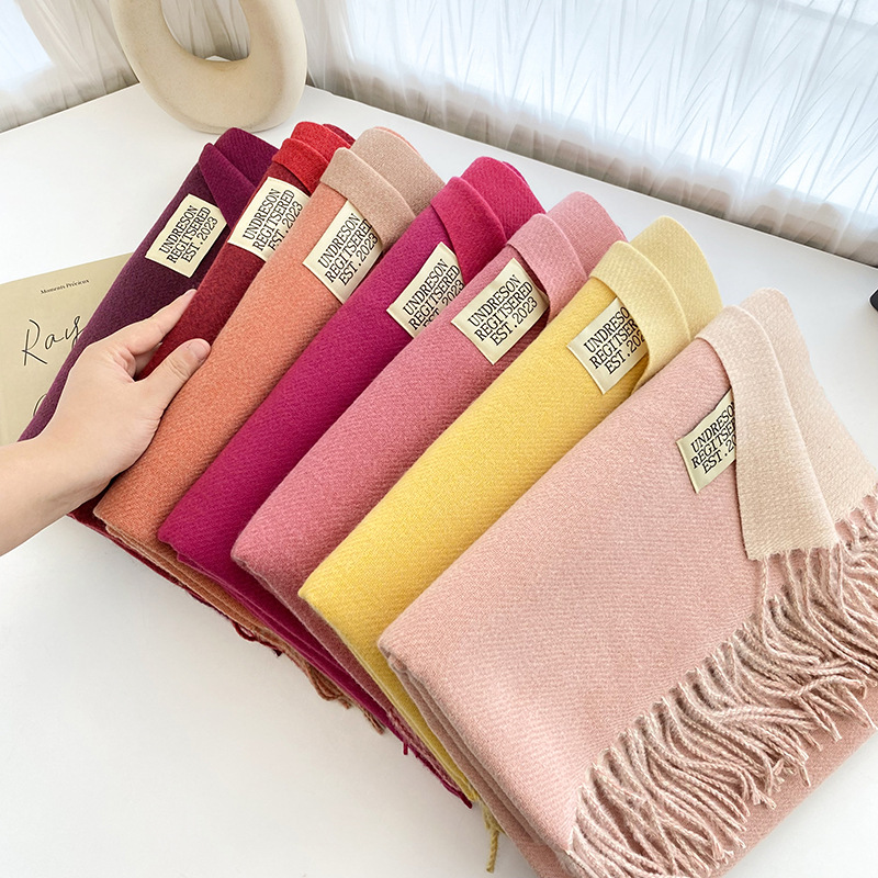 Khăn choàng len dệt kim nam nữ màu trơn, giữ ấm mùa đông