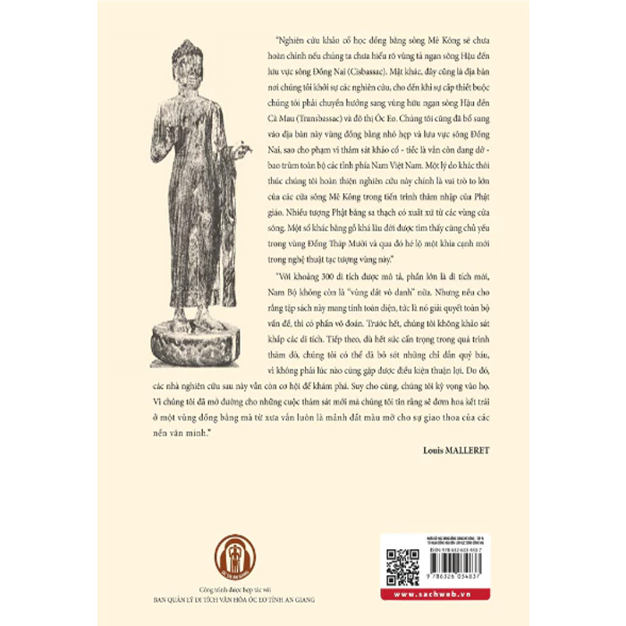Khảo Cổ Học Đồng Bằng Sông Mê Kông - Tập IV :Tả Ngạn Sông Hậu Đến Lưu Vực Sông Đồng Nai Nghiên cứu khảo cổ học đồng bằng sông Mê Kông sẽ chưa hoàn chỉnh nếu chúng ta chưa hiểu rõ vùng tả ngạn sông Hậu đến lưu vực sông Đồng Nai (Cisbassac). Mặt khác, đây cũng là địa bàn nơi chúng tôi khởi sự các nghiên cứu, cho đến khi sự cấp thiết buộc chúng tôi phải chuyển hướng sang vùng hữu ngạn sông Hậu đến Cà Mau (Transbassạc) và đô thị Óc Eo, Chúng tôi cũng đã bổ sung vào địa bàn này vùng đồng bằng nhỏ hẹp và lưu vực sông Đồng Nai, sao cho phạm vị thám sát khảo cổ - tiếc là vẫn còn dang dở -bao trùm toàn bộ các tỉnh phía Nam Việt Nam. Một lý do khác thôi thúc chúng tôi hoàn thiện nghiên cứu này chính là vai trò to lớn của các cửa sông Mê Kông trong tiến trình thâm nhập của Phật giáo. Nhiều tượng Phật bằng sa thạch có xuất xứ từ các vùng của sông. Một số khác bằng gỗ khá lâu đời được tìm thấy cũng chủ yếu trong vùng Đồng Tháp Mười và qua đó hé lộ một khía cạnh mới trong nghệ thuật tạc tượng vùng này. Với khoảng 300 di tích được mô tả, phần lớn là di tích mới, Nam Bộ không còn là "vùng đất vô danh" nữa. Nhưng nếu cho rằng tập sách này mang tính toàn diện, tức là nó giải quyết toàn bộ vấn đề, thì có phần võ đoán. Trước hết, chúng tôi không khảo sát khắp các di tích. Tiếp theo, dù hết sức cẩn trọng trong quá trình thăm dò, chúng tôi có thể đã bỏ sót những chỉ dẫn quý báu, vì không phải lúc nào cũng gặp được điều kiện thuận lợi. Do đó, các nhà nghiên cứu sau này vẫn còn cơ hội để khám phá. Suy cho cùng, chúng tôi kỳ vọng vào họ. Vì chúng tôi đã mở đường cho những cuộc thám sát mới mà chúng tôi tin rằng sẽ đơm hoa kết trái ở một vùng đồng bằng mà từ xưa vẫn luôn là mảnh đất màu mỡ cho sự giao thoa của các nền văn minh.