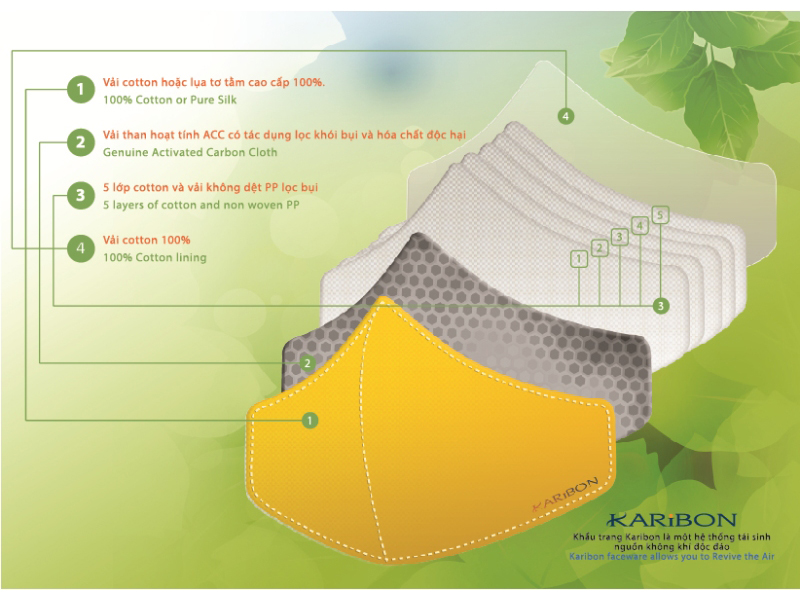 Mua tại TiktokKhẩu trang Karibon Cotton là khẩu trang tám lớp công nghệ Úc, giúp bảo vệ bạn và gia đình khỏi không khí ô nhiễm, đặc biệt là ở các đô thị, nơi khí thải từ phương tiện giao thông chiếm từ 40% - 50% các chất gây ô nhiễm. Tóm tắt công dụng chính của khẩu trang hoạt tính Karibon: