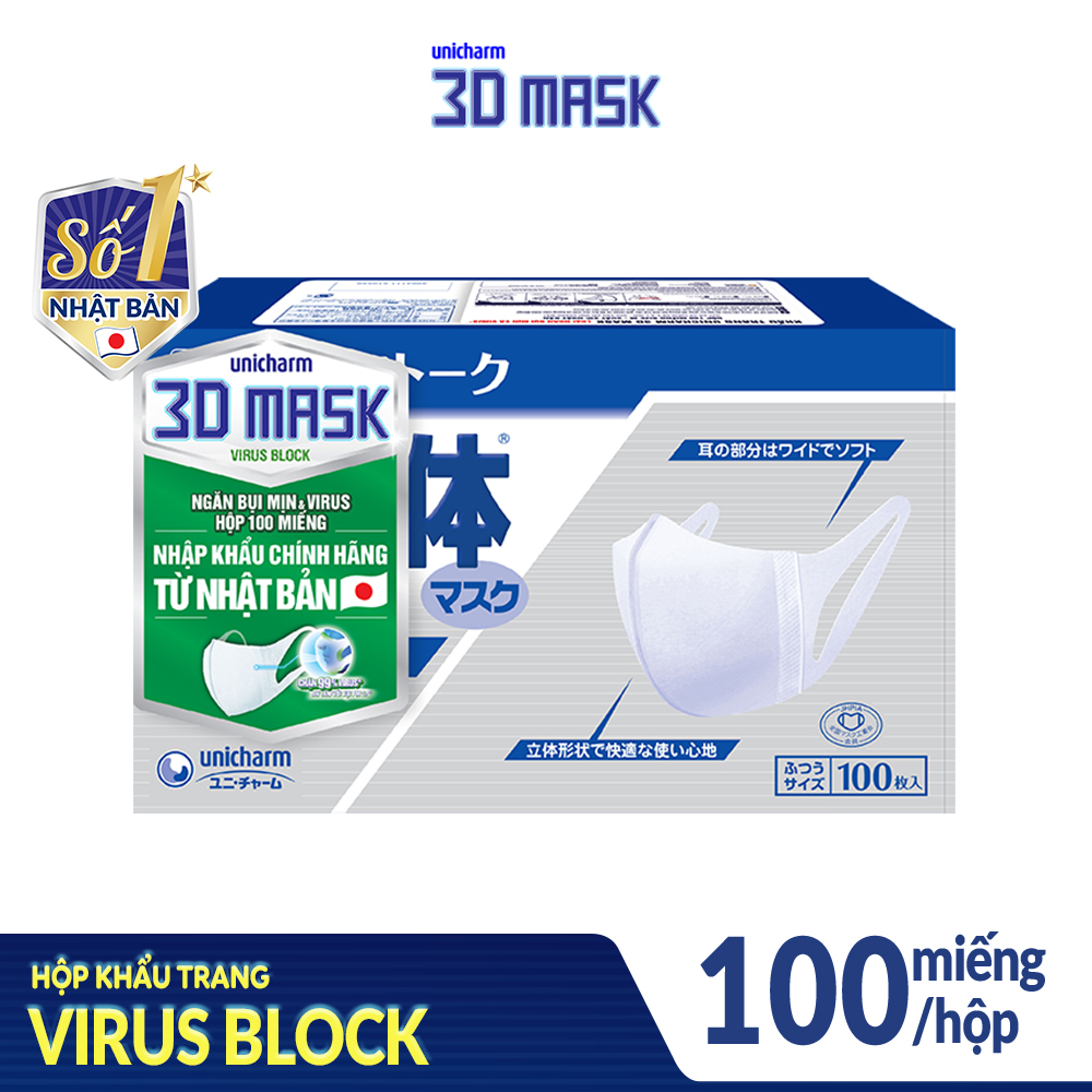 Khẩu trang Unicharm 3D Mask Ngăn Virus size M hộp 100 miếngKhẩu trang Unicharm 3D Mask Ngăn Virus size M hộp 100 miếngKhẩu trang Unicharm 3D Mask Ngăn Virus size M hộp 100 miếngKhẩu trang Unicharm 3D Mask Ngăn Virus size M hộp 100 miếng