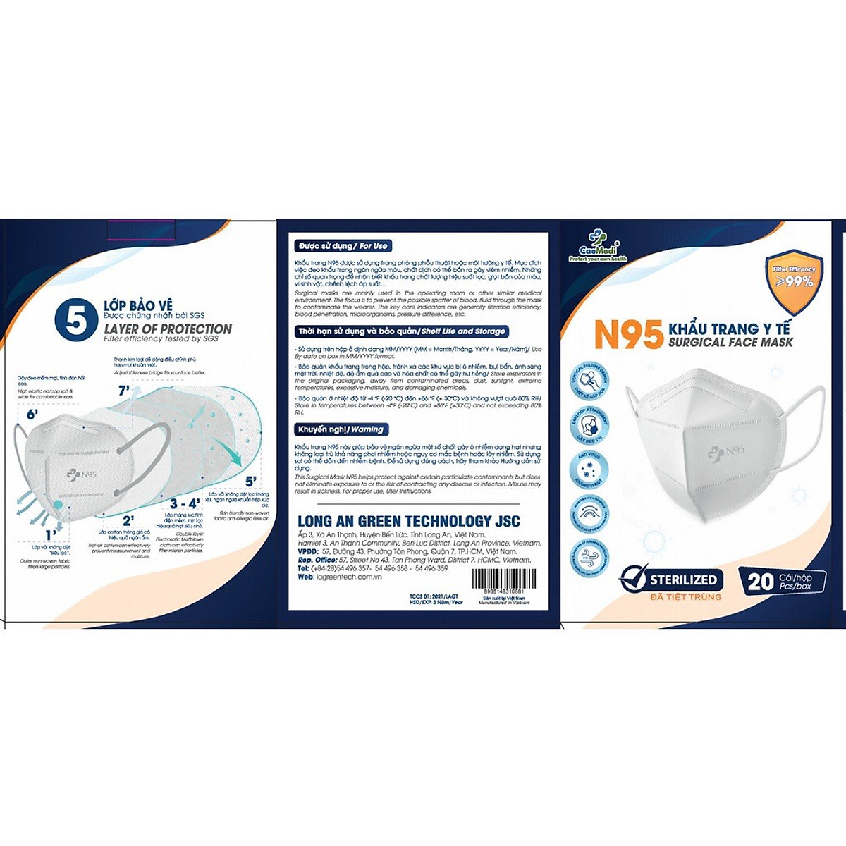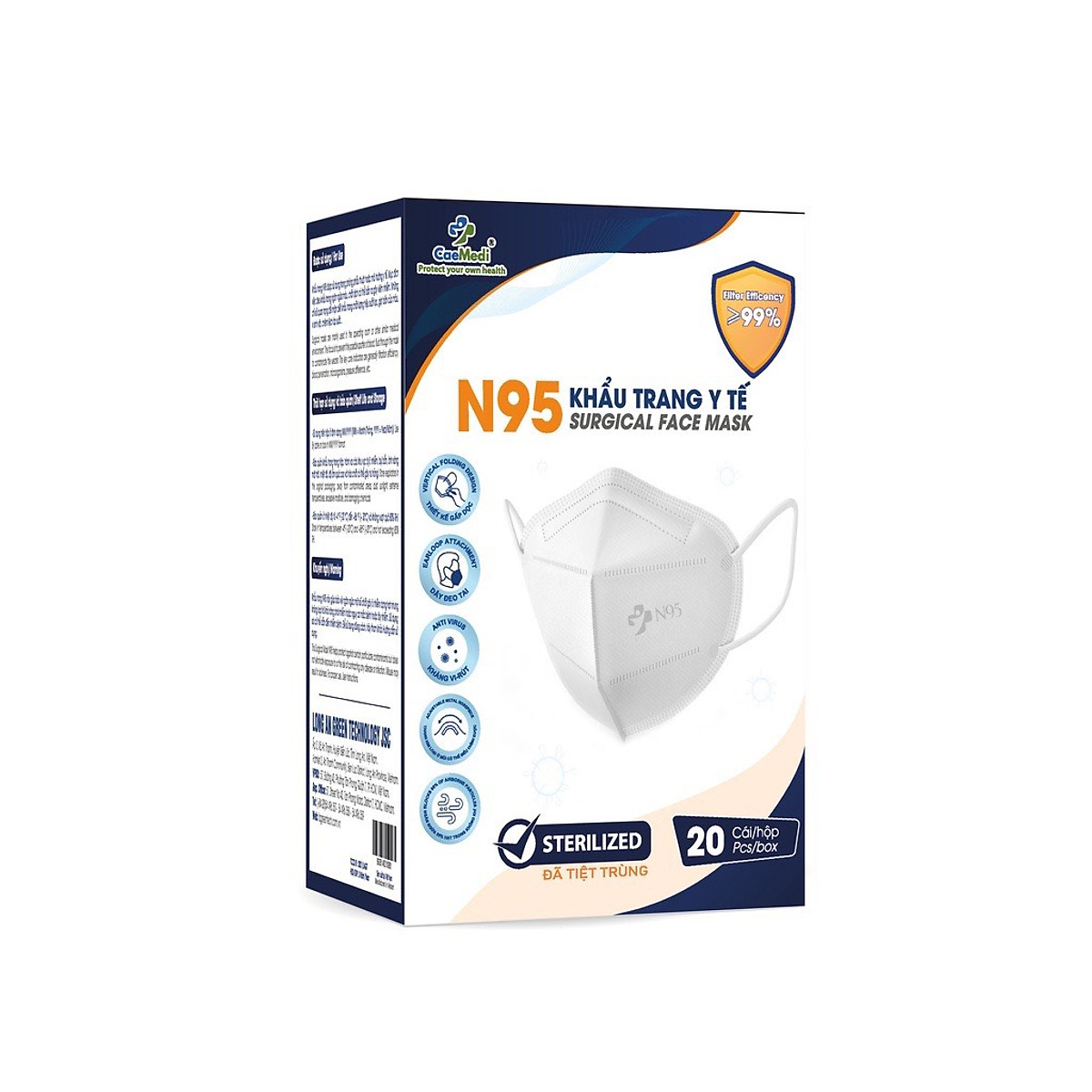 Khẩu trang y tế CAEMEDI N95 cao cấp, kháng khuẩn, lọc bụi bẩn đạt chuẩn BFE, FDA, CE xuất khẩu Châu Âu - Hộp 20 cái