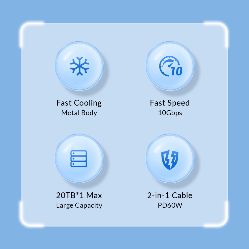 TÍNH NĂNG NỔI BẬT -Hộp ổ cứng 2.5" SSD/HDD SATA 3 USB3.1 Gen2 Type-C -Dùng cho cả SSD và HDD loại 2.5". Hỗ trợ ổ cứng 2.5" 4TB -USB3.1 Gen2 Type-C, tốc độ truyền dữ