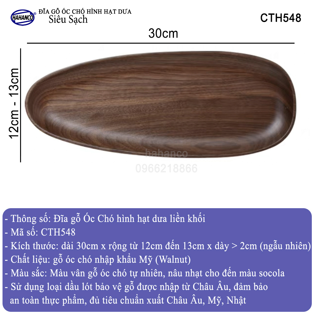 QUÝ KHÁCH CHÚ Ý: Hiện nay rất nhiều cơ sở bán khay/đĩa giả gỗ Óc Chó, kém chất lượng, thường được làm bằng gỗ tạp và ngâm hóa chất nhuộm màu rất độc hại, nhưng vẫn ghi là khay/đĩa gỗ Óc Chó để đánh lừa người tiêu dùng. Để đảm bảo quyền lợi hãy chọn mua đúng khay/đĩa gỗ Óc Chó do CTy HAHANCO sản xuất