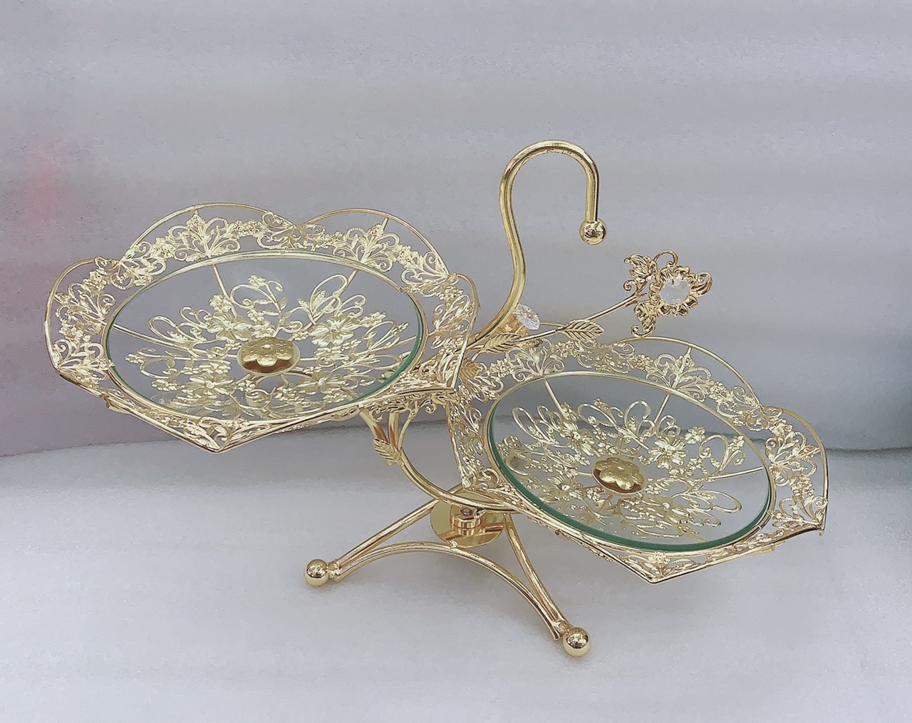 ✨KHAY ĐỰNG BÁNH KẸO HOA QUẢ THỦY TINH 2 TẦNG KHUNG KIM LOẠI DÁNG NGANG - VD29