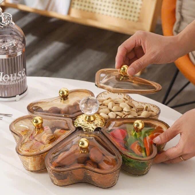 Khay đựng hoa quả bánh kẹo Tết phong cách châu Âu, hộp đựng mứt trang trí Tết 4-5 cánh xoay 360 độ