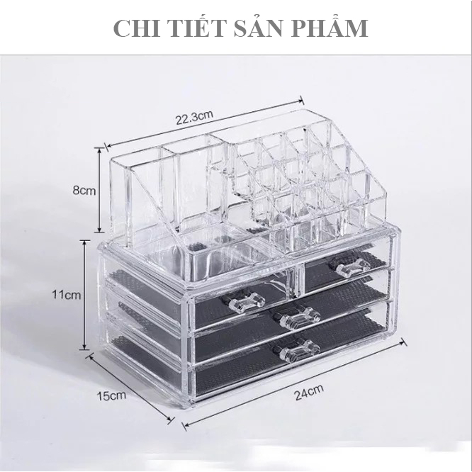 Khay Hộp Đựng Mỹ Phẩm Trang Điểm 3 Tầng Vuông