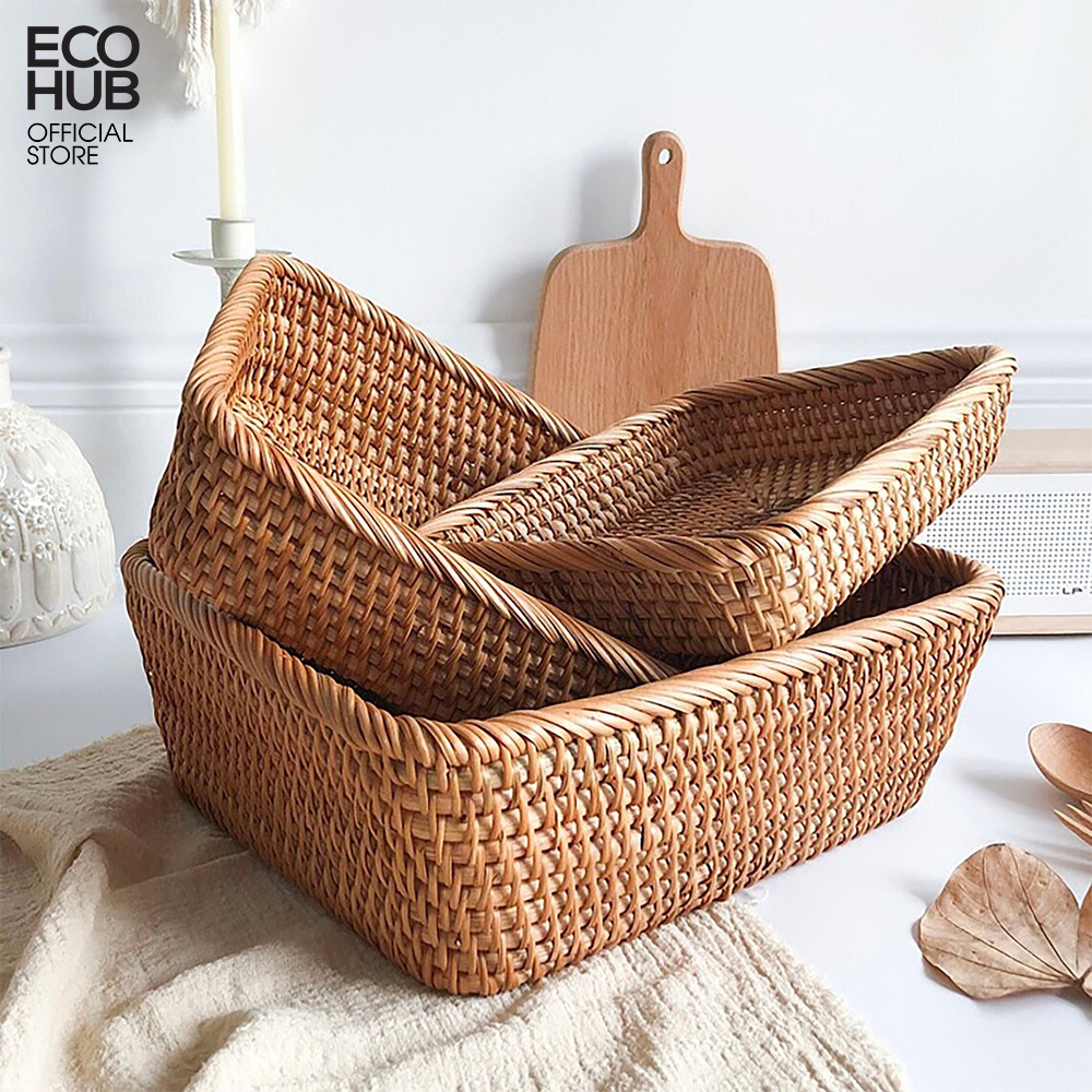 Giỏ Mây ECOHUB Kệ Đựng Đồ Decor, Khay Đựng Mỹ Phẩm, Giỏ Đựng Đồ Ăn Vặt Hình Chữ Nhật Tiện Lợi 2025