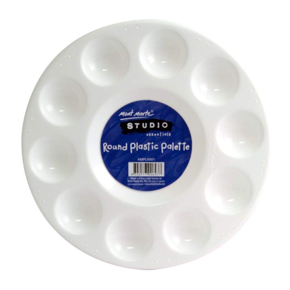 Palette nhựa tròn gồm 10 rãnh pha màu, đường kính 17cm, ở giữa có ranh tròn to ở trung tâm.