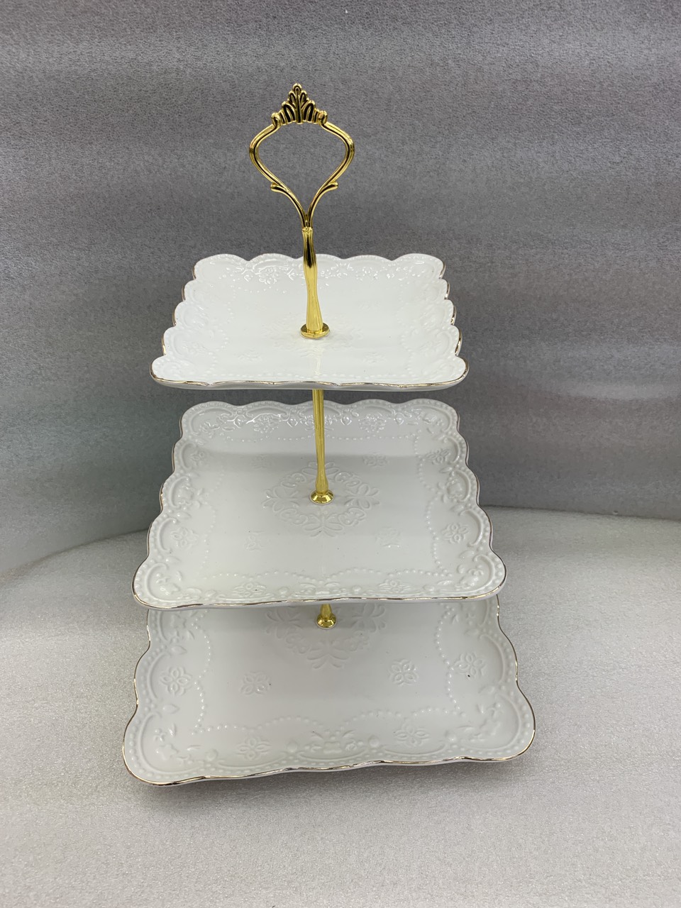 khay bánh 3 tầng hoa hồng sứ xương của Anh