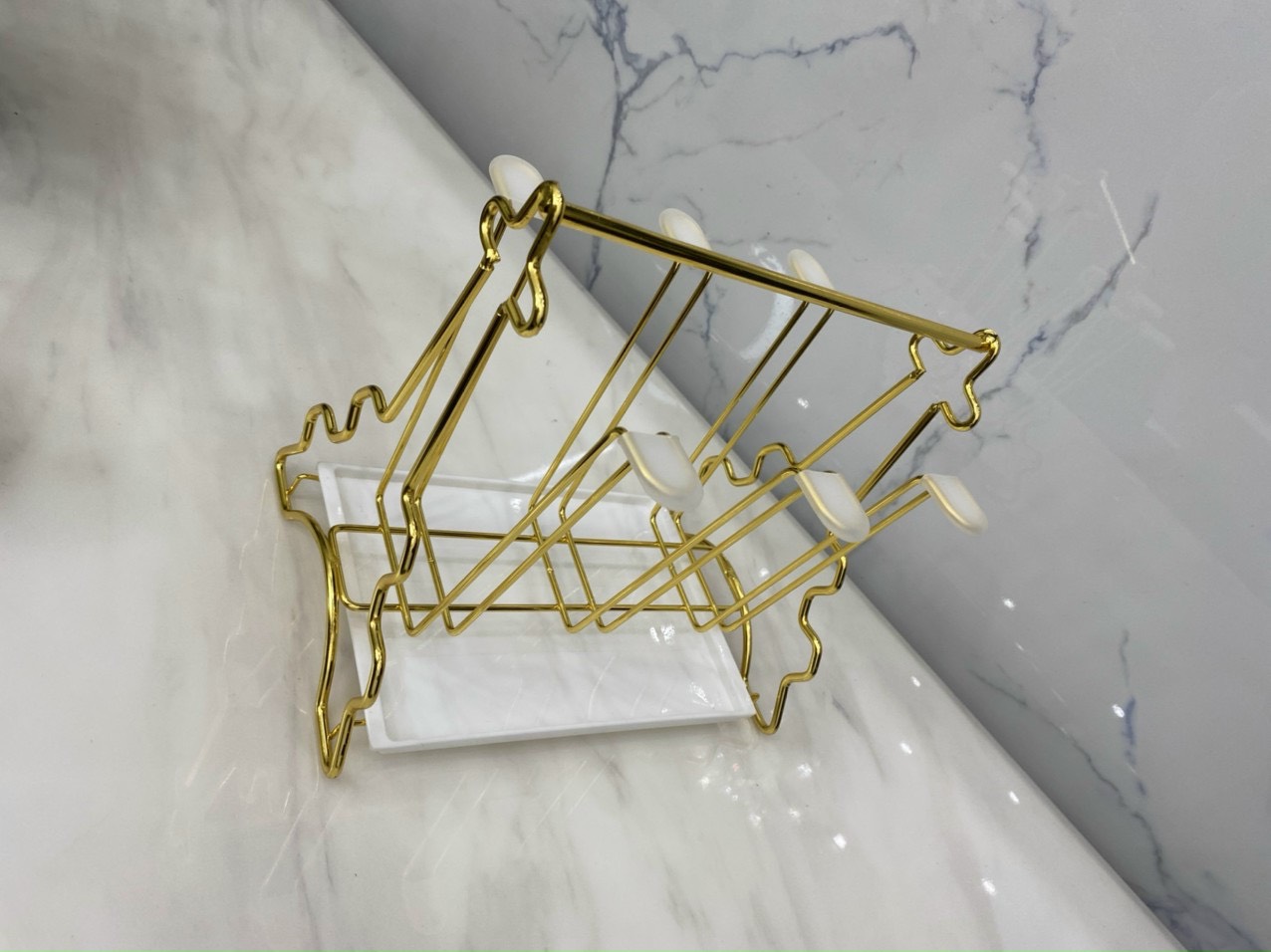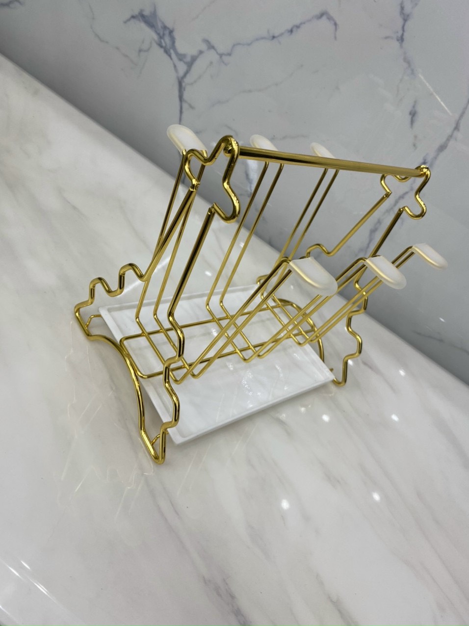 Giá úp ly, kệ úp cốc, chất liệu hợp kim mạ vàng sang trọng, Kèm khay hứng nước