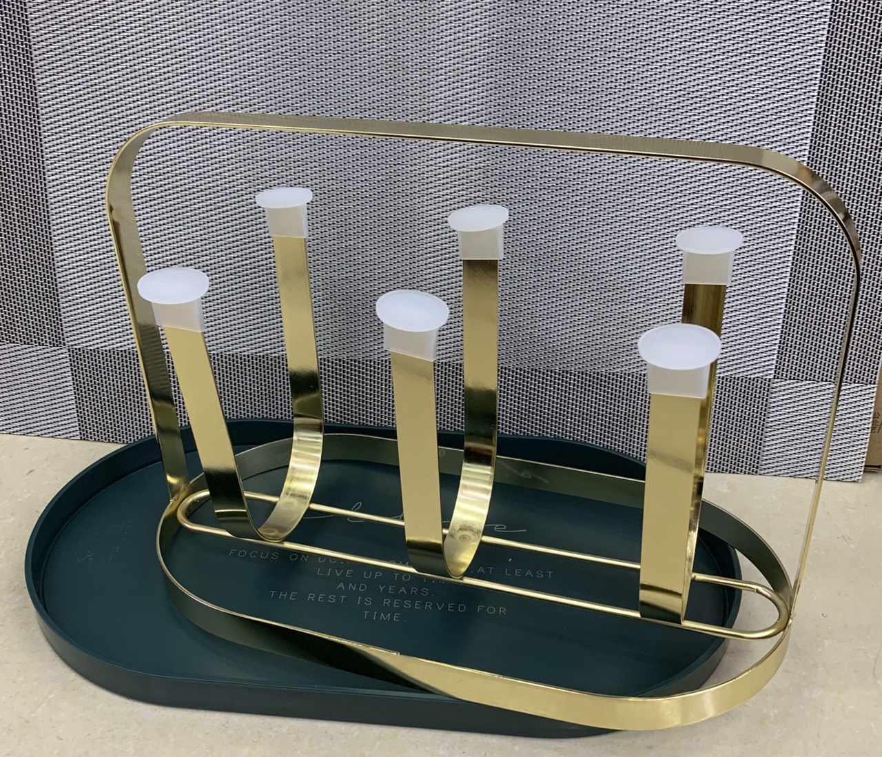 Giá úp ly, kệ úp cốc, chất liệu hợp kim mạ vàng sang trọng, Kèm khay hứng nước