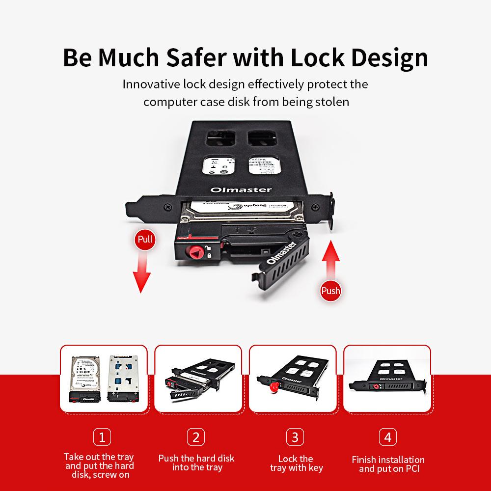 The hard disk bay utilizes expansion card slot to add a removable 2.5'' SATAhard drive bay. The key lock design enaures extra security. It supports up to9.5mm 2.5'' HDD/SSD. Features: Wide Compatibility Applicable for PCI