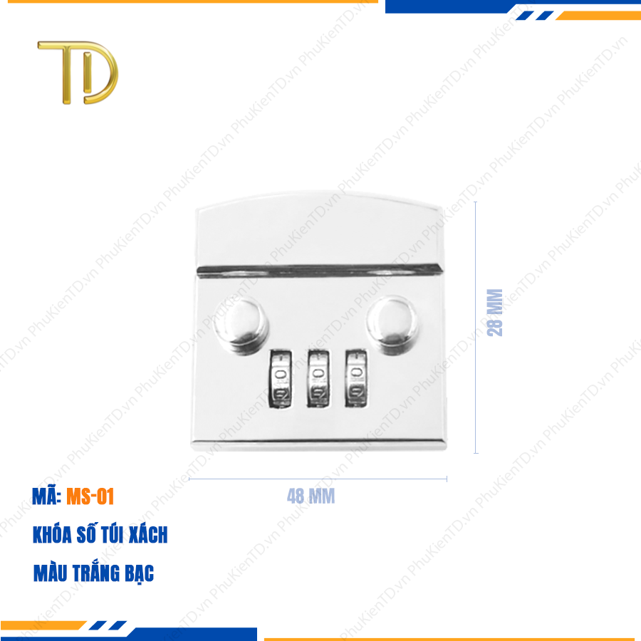 - Hàng luôn có sẵn, giao hàng siêu tốc, freeship toàn quốc THÔNG TIN SẢN PHẨM – Tên sản phẩm : Khóa số túi xách, Khóa 3 số túi xách cao cấp công nghệ mạ điện độ bền 5-8 năm – Thương hiệu: Phụ kiện TD – Chất liệu: Hợp kim cao cấp – Công nghệ: Mạ điện Electroplating, chống ăn mòn, chống rỉ sét, không bay màu. – Kích thước: