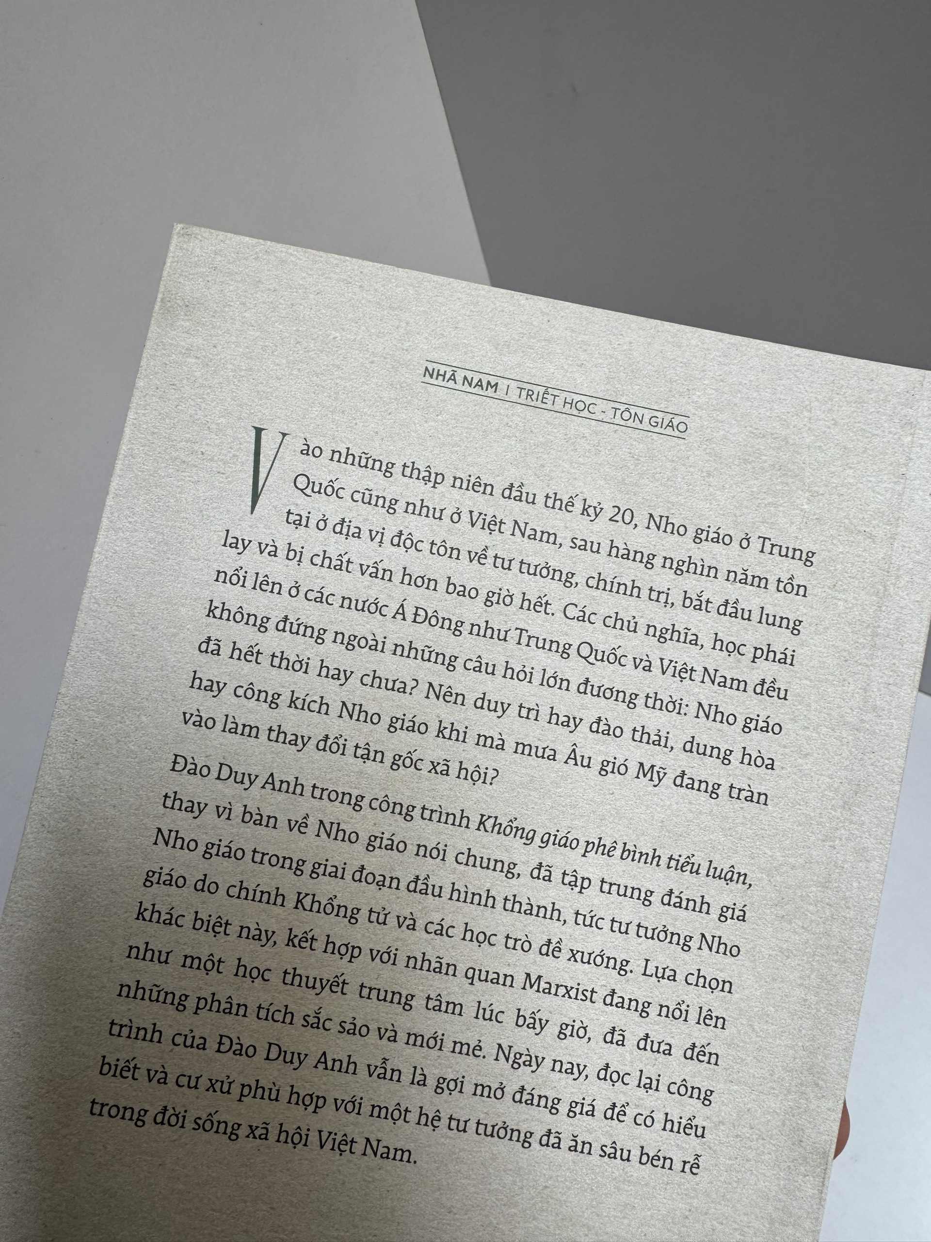 Vào những thập niên đầu thế kỷ 20, Nho giáo ở T-r-u-n-g Q-u-ố-c cũng như ở Việt Nam, sau hàng nghìn năm tồn tại ở địa vị độc tôn về tư tưởng, chính trị, bắt đầu lung lạc và bị chất vấn hơn bao giờ hết. Các chủ nghĩa, học phái nổi lên ở các nước Á Đông như T-r-u-n-g Q-u-ố-c và V-i-ệ-t N-a-m đều không đứng ngoài những câu hỏi lớn đương thời: Nho giáo đã hết thời hay chưa? Nên duy trì hay đào thải, dung hòa hay công kích Nho giáo khi mà mưa Âu gió M-ỹ đang tràn vào làm thay đổi tận gốc xã hội?