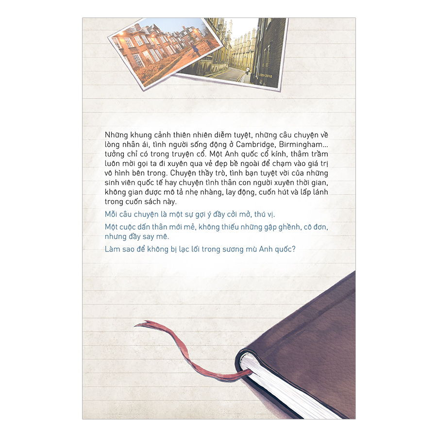 Những câu chuyện thiên nhiên diễm tuyệt, những câu chuyện về lòng nhân ái, tình người sống động ở Cambridge, Bermingham…tưởng chỉ có trong truyện cổ. Một Anh Quốc cổ kính, thâm trầm luôn mời gọi ta đi xuyên qua vẻ đẹp bề ngoài để chạm vào giá trị vô hình bên trong. Chuyện thầy trò, tình bạn tuyệt vời của những sinh viên quốc tế hay chuyện tinh thần con người xuyên thời gian, không gian được mô tả nhẹ nhàng, lay động, cuốn hút và lấp lánh trong cuốn sách này.