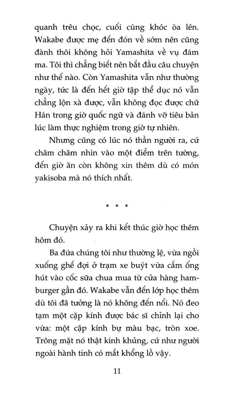 Những tưởng mùa hè năm lớp Sáu sẽ trôi đi trong êm ả, Kiyama, Yamashita và Wakabe đều không ngờ chúng đang đứng trước ngưỡng của cuộc đời. Cuộc gặp gỡ với “ông cụ”, người suốt câu chuyện không hề được nêu tên, đã đem đến cho ba đứa trẻ một tình bạn kỳ lạ. Có lẽ, đó là lần đầu tiên chúng kết bạn với người lớn, và đó là một mối quan hệ bình đẳng theo đúng nghĩa. Ba đứa giúp ông sửa nhà, chăm sóc vườn hoa, giặt và phơi quần áo… bù lại chúng được ông dạy gọt lê, dạy học chữ Hán, và trên hết, chúng học được rằng việc già đi, lưng còng xuống, mặt nhiều nếp nhăn cũng mang ý nghĩa. Ba đứa trẻ dần phải tự đối mặt với những thắc mắc của chính bản thân chúng về cuộc sống, những điều mà, có khi sống gần trọn cuộc đời người ta vẫn chưa hiểu nổi.