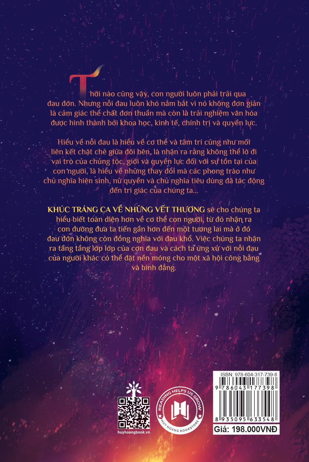 Mua tại TiktokCuốn sách cho người đọc hiểu biết toàn diện về cơ thể con người, về ảnh hưởng của những cơn đau đến cuộc sống của chúng ta, cách ta nhìn nhận ý nghĩa và chế ngự nó trong suốt chiều dài lịch sử. Từ đó, chúng ta nắm bắt được bản chất của nỗi đau, cũng như mối liên kết chặt chẽ giữa cơ thể và tâm trí, và nhận ra rằng không thể lờ đi vai trò của c.h.ủ t.ộ, giới và quyền lực đối với sự tồn tại của con người.