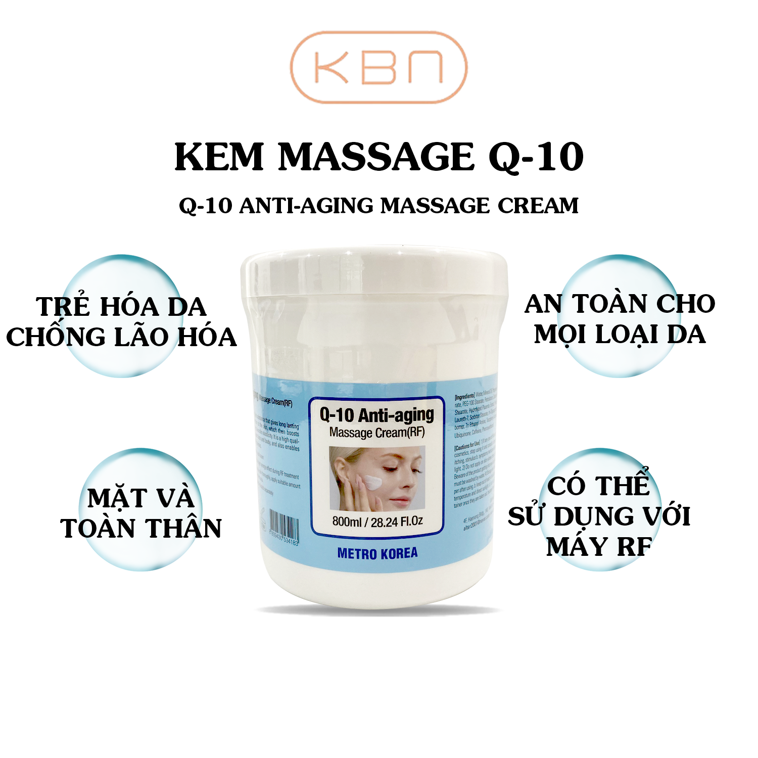 Mua tại TiktokKEM MASSAGE MẶT và BODY CHO SPA - Q10 ANTI MASSAGE RF CREAM 800ml Xuất xứ: Hàn Quốc Dùng được cho mọi loại da, kể cả da nhạy cảm Kem Massage RF là một loại kem chuyên dùng để nâng cơ mặt body, cổ, đặc biệt là sử dụng kết hợp với máy nâng cơ RF giúp da mặt, body căng mịn săn chắc, hết chảy xệ và chống lão hóa cho da Phụ nữ ngoài 30, theo thời gian cấu trúc nâng đỡ da bắt đầu lỏng lẻo, chùng nhão, nếp nhăn hình thành.