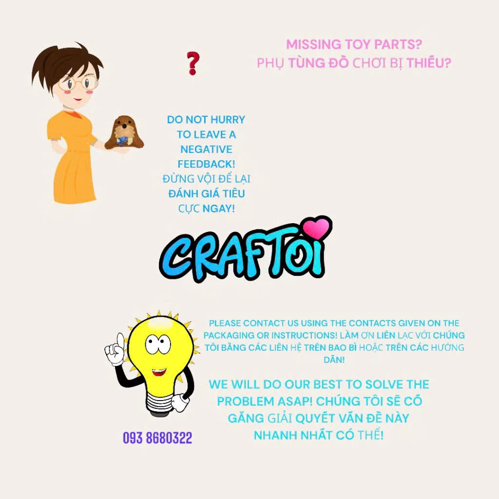 Mua tại TiktokMã hàng: Gingerbread man Tuổi sử dụng: 5+ Kích thước: 10x7 cm Một bộ bao gồm: 7 bộ phận làm bằng vải nỉ Bông nhồi Chỉ may Kim an toàn làm bằng nhựa Bảo quản: trong phòng khô thoáng. Thành phần: polyester, nhựa. Năm sản xuất: 2023 Độ bền của sản phẩm: sử dụng không giới hạn!!! Xuất xứ VIỆT NAM !!!!!!! Đồ chơi sáng tạo từ nhồi bông. Hãy bắt đầu may con búp bê đầu tiên của bạn!!! Cực kì dễ dàng may với lỗ đục săn và kim làm bằng nhựa rất an toàn. Bé tự may thú bông cho mình Các bạn nhỏ tự tay may vá Vì mất nhiều thời gian tự may, bé sẽ yêu quý con thú bông của mình hơn. Rèn luyện tính kiên nhẫn kỹ năng tư duy logic cho trẻ em Sử dụng vải sang trọng an toàn Mềm mại hơn, thích hợp cho bé chơi Được làm từ bông PP mềm Tự làm Đồ chơi nhồi bông sẽ giúp trẻ nâng cao kỹ năng tập trung, khéo léo của đôi bàn tay. Đồng thời giúp trẻ trân trọng và nâng niu hơn những gì do chính tay mình làm ra. Bộ sản phẩm handmade Sewing giúp trẻ em tự làm thú nhồi bông một cách dễ dàng. Rất đơn giản, trẻ có thể dễ dàng dùng KIM NHỰA khâu các miếng nỉ được đã đục lỗ sẵn cùng với chỉ thêu đính kèm, và sau đó nhồi thêm bông để tạo ra một Đồ chơi vô cùng đáng yêu. Mẹ hãy giúp em thực hiện món đồ này để có những kỉ niệm thật vui với nhau nha! Tất cả đã gói gọn trong bộ sản phẩm tự làm Đồ chơi nhồi bông của Craftoi, vô cùng an toàn và lại rất dễ. Gingerbread man Creativity set. Stuffed toy. Sewing my first doll !!! Easy to sew with a prepunched holes and safety plastic needle. 5+ DIMENSIONS: 10x7 cm THE SET INCLUDES: 7 FELT PARTS STUFFING THREADS SAFETY PLASTIC NEEDLE Storage: in dry ventilated rooms. Materials: polyester, plastic. Service life is not limited !!! MADE IN VIETNAM