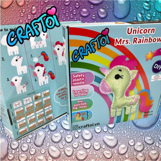✨KIM NHỰA Bộ Thủ Công Trẻ Tự Làm Thú Bông 5+ Unicorn Mrs.Rainbow Craftoi Felt Sewing toy prepunched holes plastic needle