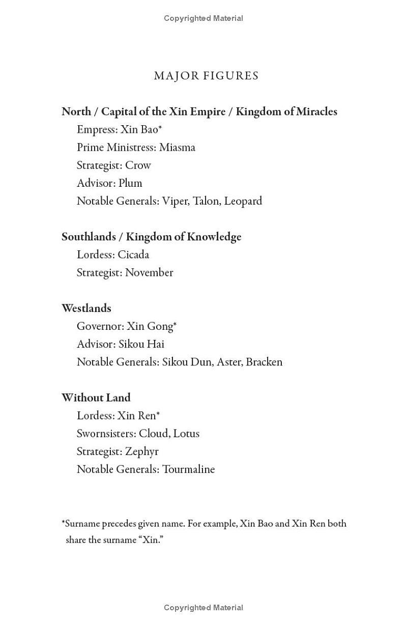 Orphaned at a young age, Zephyr took control of her fate by becoming the best strategist of the land and serving under Xin Ren, a warlordess whose loyalty to the empress is double-edged―while Ren’s honor draws Zephyr to her cause, it also jeopardizes their survival in a war where one must betray or be betrayed. When Zephyr is forced to infiltrate an enemy camp to keep Ren’s followers from being slaughtered, she encounters the enigmatic Crow, an opposing strategist who is finally her match. But there are more enemies than one―and not all of them are human.