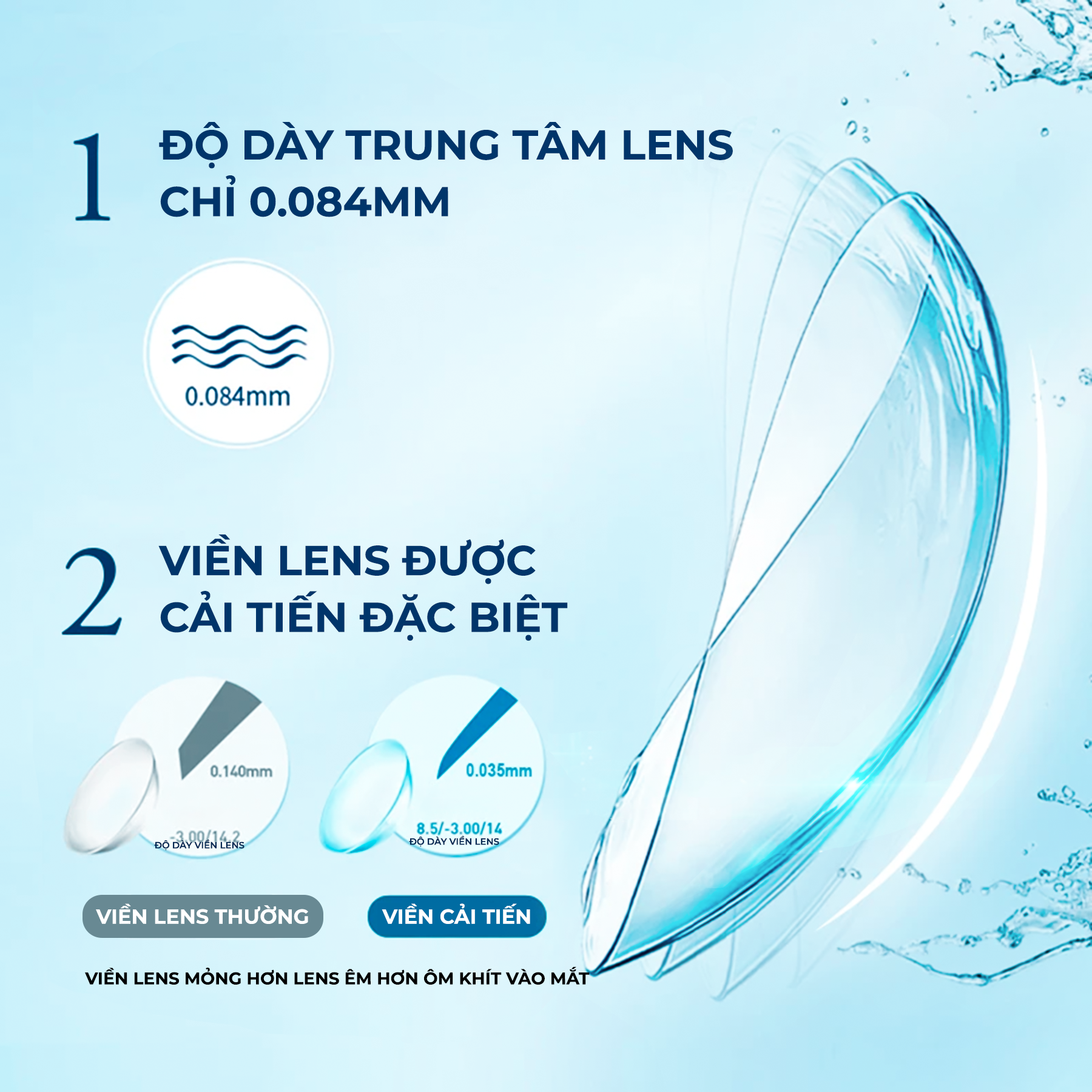 Dia 14.0mm nhưng có hiệu ứng giãn tròng như các dòng lens 14.5. Đảm bảo lens có hiệu ứng giãn to như bạn mong muốn nhưng đeo lại êm ái và an toàn hơn các