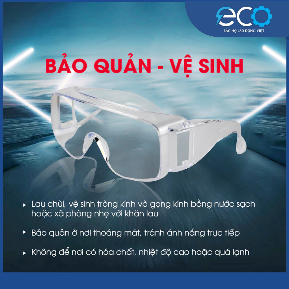 - Bảo vệ mắt khỏi bụi mịn, hóa chất, tia UV, vật bắn