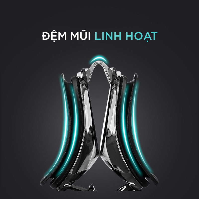 - Đệm mắt cao su được làm 100% silicone không gây kích ứng da. Được thiết kế theo nhân trắc học, giúp kính ôm sát mắt, chống vào nước và giúp mở rộng tối đa góc nhìn khi đeo.