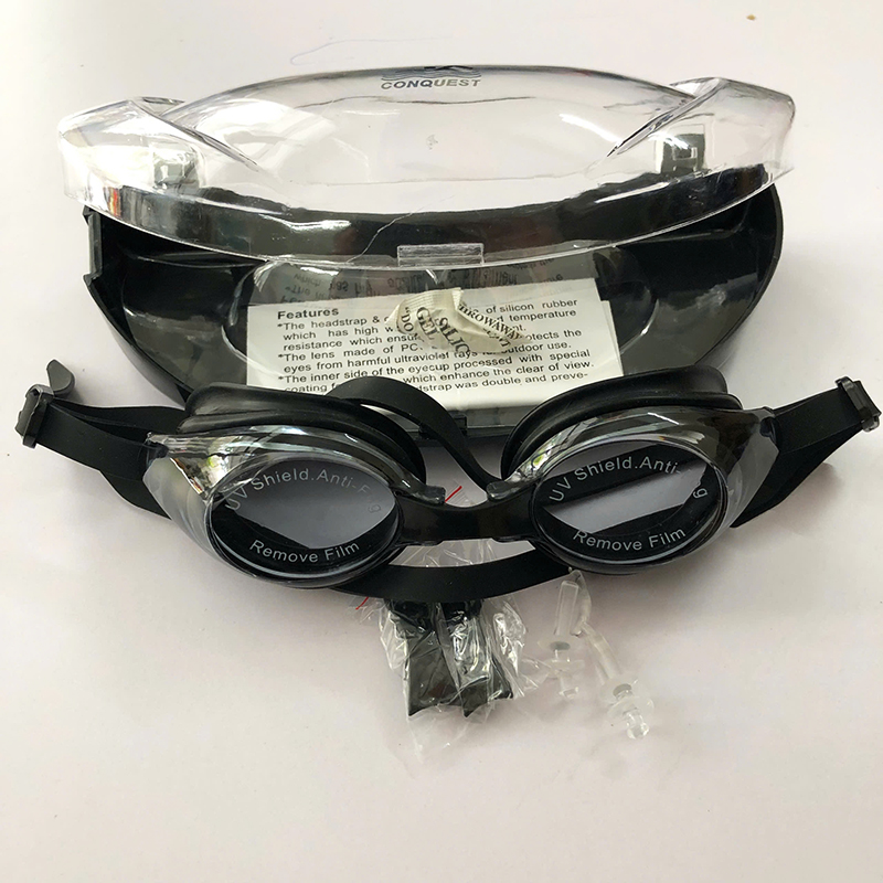 ✨Kính Bơi Người Lớn ConQuest Chống Sương Mù Chống Tia UV - Đen