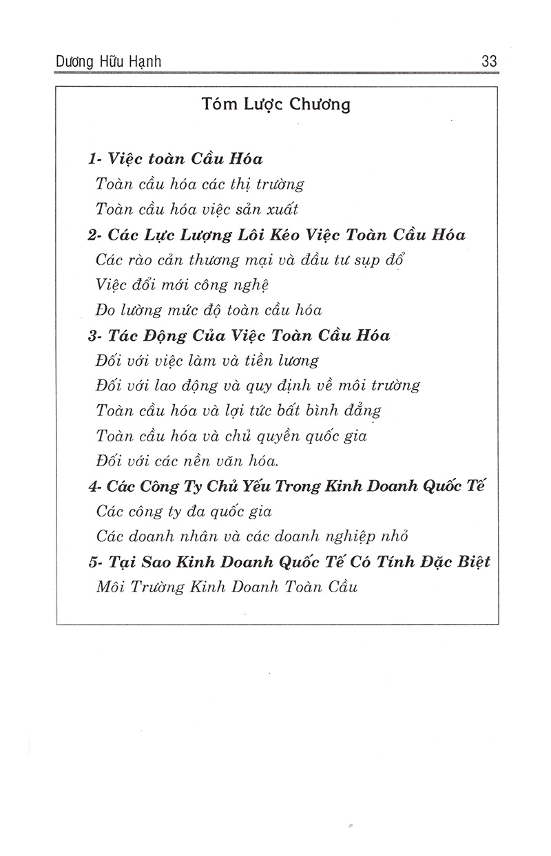 Mua tại TiktokKinh Doanh Quốc Tế - Thách Thức Của Cạnh Tranh Toàn Cầu Nội dung quyển sách Kinh Doanh Quốc Tế - Thách Thức Của Cạnh Tranh Toàn Cầu gồm các chương liên hệ sau: Chương 1: Toàn cầu hóa Chương 2: Các mối quan hệ giữa doanh nghiệp và chính quyền Chương 3: Lý thuyết thương mại quốc tế Chương 4: Hội nhập kinh tế khu vực (Regional economic integration) Chương 5: Thị trường hối đoái Chương 6: Hệ thống tiền tệ quốc tế IMS Chương 7: Đầu tư trực tiếp nước ngoài (Foreign Direct Investment: FDI) Chương 8: Các chiến lược xuất và nhập khẩu (Export and Import Strategies) Chương 9: Chiến lược và tổ chức quốc tế (International Strategy And Organization).