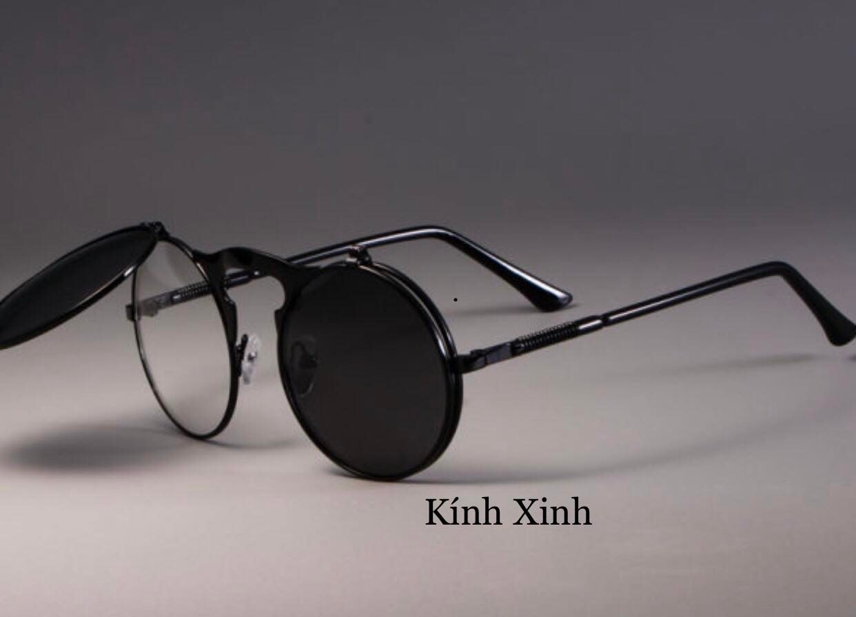- Kính râm Mắt Tròn Nhỏ 2 Lớp Lật Nắp Gọng Lò Xo Cao Cấp - Kính mắt thiết kế đa năng tiện lợi, phù hợp đeo đi cả Ngày và Đêm để bảo vệ