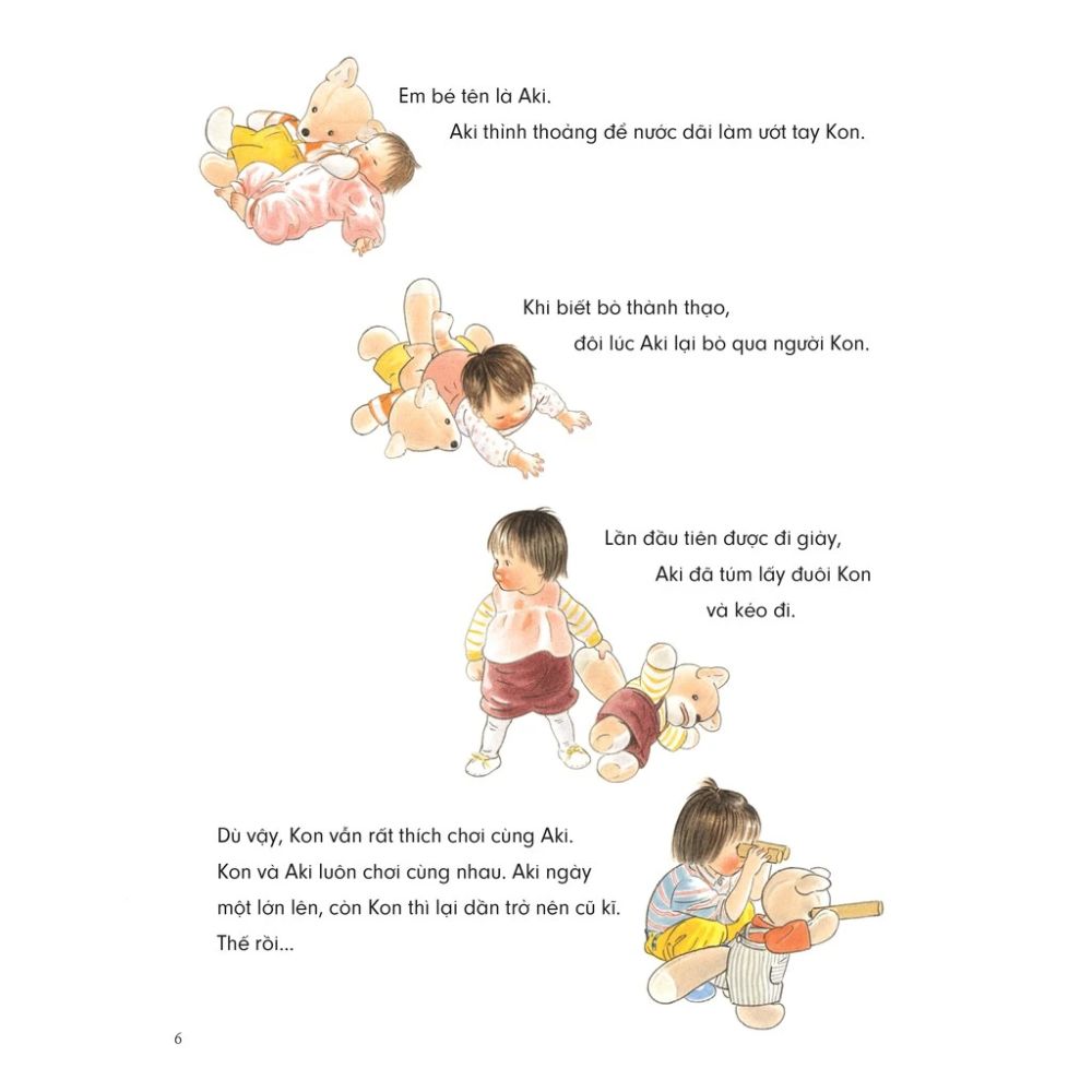 Cuốn ehon Nhật Bản Kon và Aki của tác giả Hayashi Akiko kể về tình bạn của chú cáo bằng bông tên là Kon với người bạn nhỏ của mình.