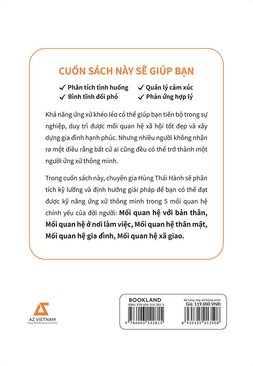 Một trong những kỹ năng quan trọng nhất của con người là kỹ năng ứng xử. Khi ứng xử thông minh, bạn không chỉ thuận lợi đạt được mục tiêu mà còn gây thiện cảm và tạo ra các mối quan hệ có ích với những người xung quanh. Dù bạn đang ở vị trí nào trong xã hội, là người chủ động hay bị động trong một mối quan hệ, chỉ cần ứng xử thông minh thì bạn đã nắm trong thay chìa khóa để mở ra cánh cửa cơ hội và đi đến thành công,