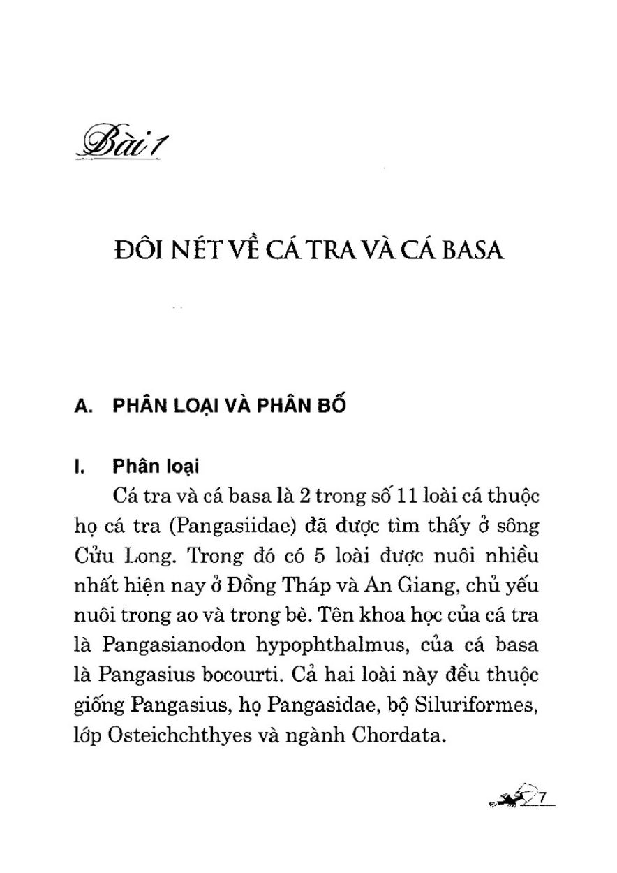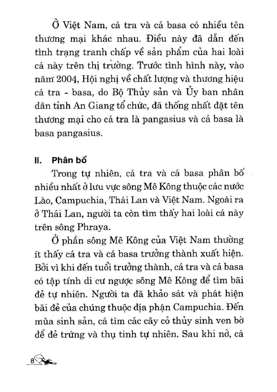 Kỹ Thuật Nuôi Cá Tra Và Cá Basa Trong Ao   Cá tra và cá basa là 2 trong số 11 loài cá thuộc họ cá tra (Pangasiidae) đã được tìm thấy ở sông Cửu Long. Trong đó có 5 loài được nuôi nhiều nhất hiện nay ở Đồng Tháp và An Giang, chủ yếu nuôi trong ao và trong bè. Tên khoa học của cá tra là Pangasianodon hypophthalmus, của cá basa là Pangasius bocourti. Cả hai loài này đều thuộc giống Pangasius, họ Pangasidae, bộ Siluriformes, lớp Osteichchthyes và ngành Chordata. Ở Việt Nam, cá tra và cá basa có nhiều tên thương mại khác nhau. Điều này đã dẫn đến tình trạng tranh chấp về sản phẩm của hai loài cá này trên thị trường. Trước tình hình này, vào năm 2004, Hội nghị về chất lượng và thương hiệu cá tra basa, do Bộ Thủy sản và Ủy ban nhân dân tỉnh An Giang tổ chức, đã thống nhất đặt tên thương mại cho cá tra là pangasius và cá basa là basa pangasius.