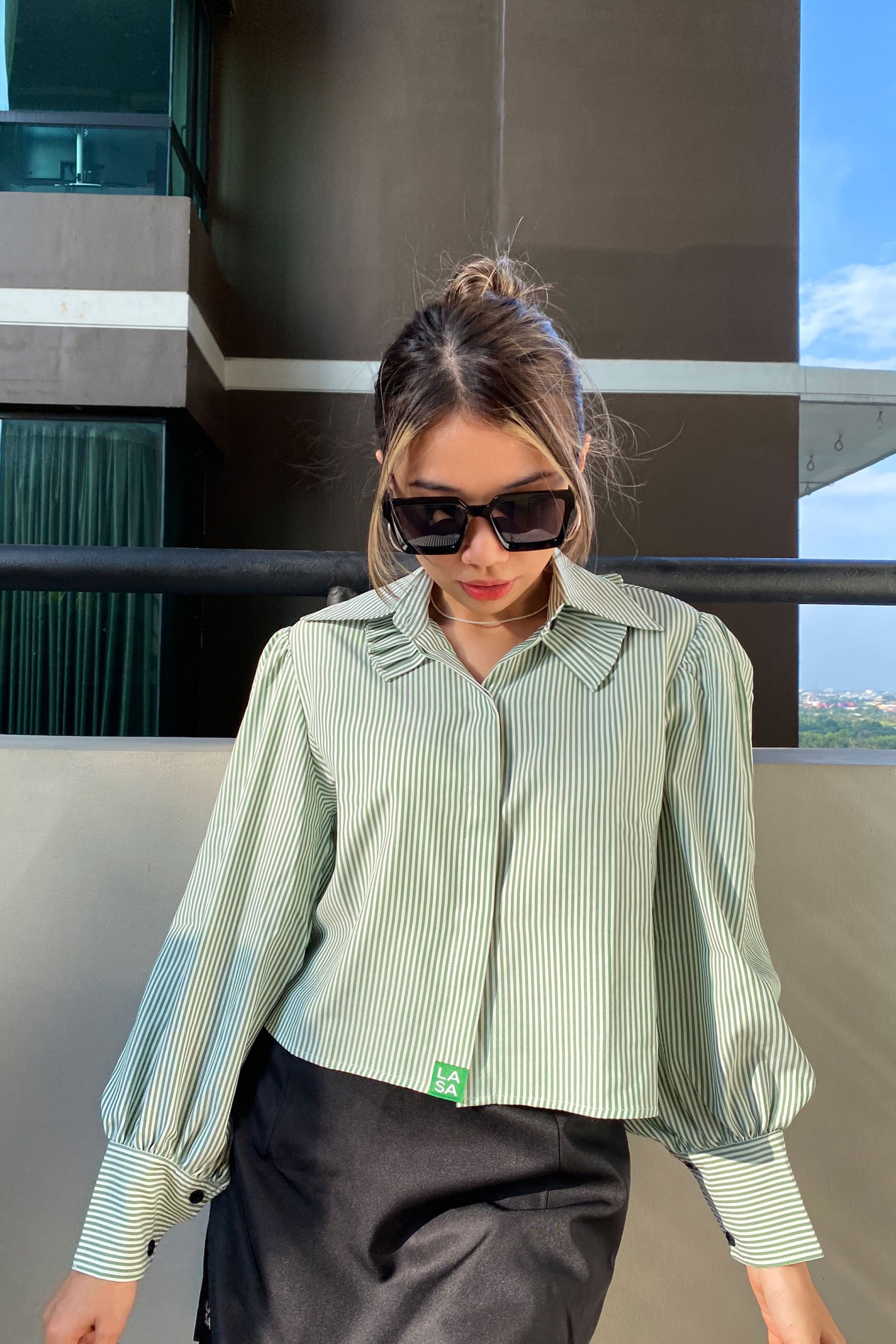 Sơ Mi Kẻ Sọc Tay Bồng – Nét Nữ Tính Chuẩn Công Sở