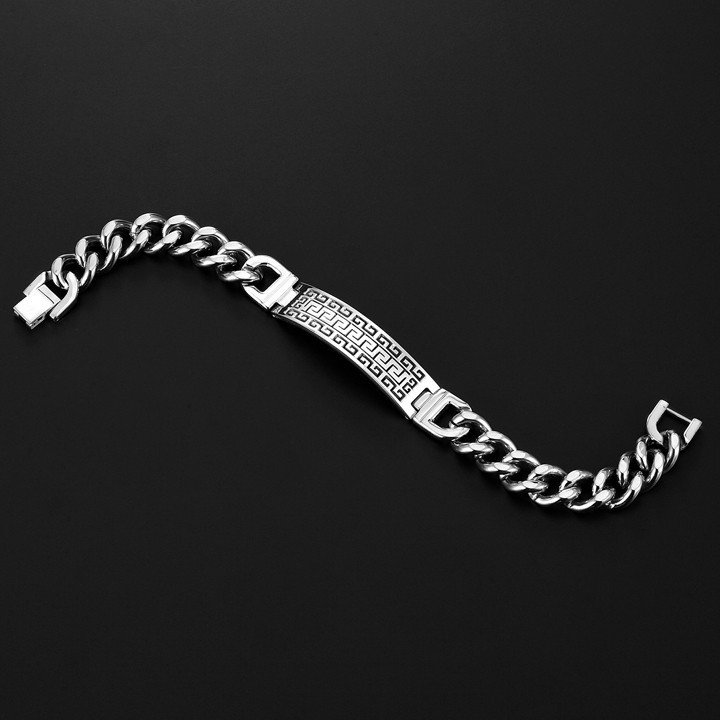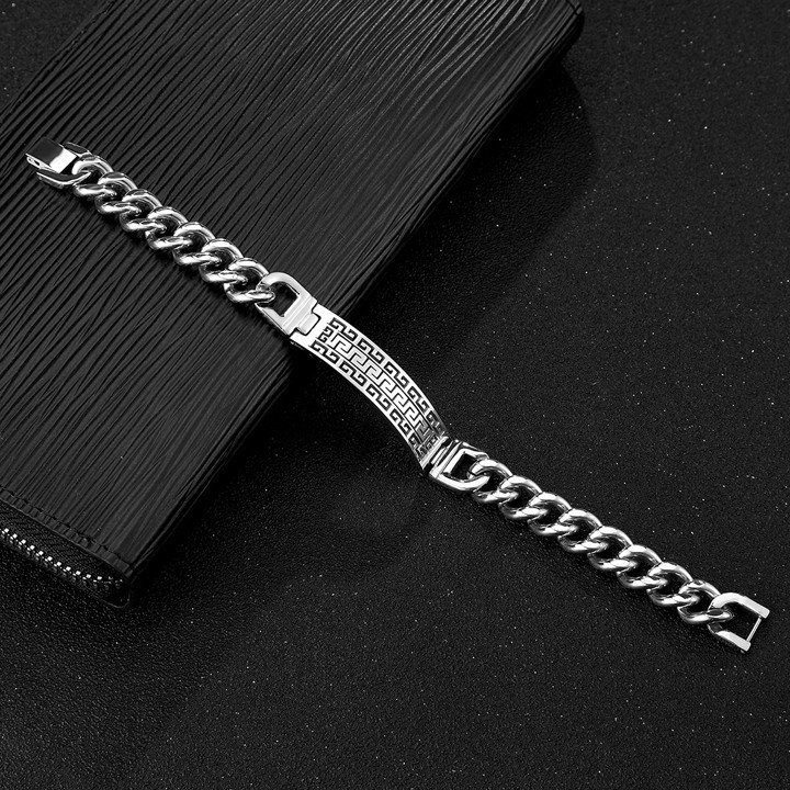Lắc tay nam thời trang mặt chữ nhật viền mê cung phong cách sành điệu MST93 được làm từ hợp kim titanium cứng cáp