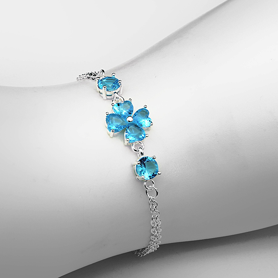 Vòng , Lắc Tay Nữ Bạc Ta Cỏ 4 Lá Đính Đá May Mắn Bạc Hiểu Minh LTU576