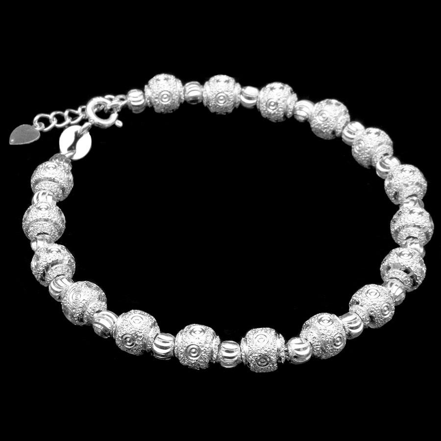 Vòng , Lắc Tay Nữ Bạc Ta Dây Mì Mix Bi Phay BẠC HIỂU MINH LTU002S