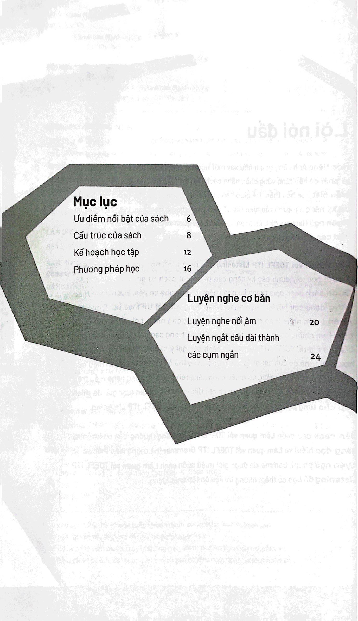 Làm quen với TOEFL ITP Listening đưa ra lộ trình học tập từng bước cho phép người học xây dựng các kỹ năng nghe cơ bản để phục vụ bài thi TOEFL ITP một cách tự nhiên và vững chắc. Cuốn sách được chia thành ba phần gồm: kiến thức cơ bản về kỹ năng nghe, các dạng bài nghe thường gặp và bài tập thực hành. Trong đó, phần luyện nghe theo dạng bài là quan trọng nhất, bởi nó sẽ cung cấp cho bạn những dạng câu hỏi thường xuất hiện trong bài thi TOEFL ITP. Ngoài ra, sách còn gợi ý các kế hoạch học tập phù hợp với trình độ của người học để giúp bạn có thể ôn luyện theo cách hiệu quả nhất. Chắc hẳn sẽ không có nhiều cuốn sách rèn luyện kỹ năng nghe hiểu trên thị trường có thể cung cấp giải thích chi tiết cho từng câu hỏi và đưa ra chiến lược giải đề thích hợp cho từng dạng bài giống như Làm quen với TOEFL ITP Listening.