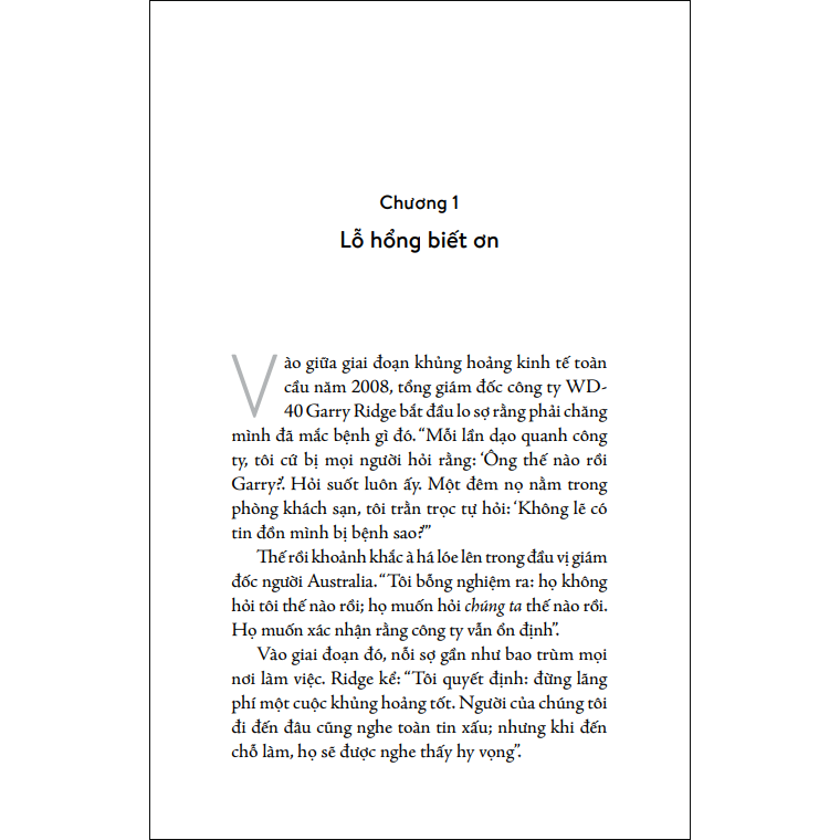 Quyển sách này đi sâu bàn luận một yếu tố tâm lý trong quản trị là lòng biết ơn và đưa ra những các thức đơn giản và thiết thực để phát huy yếu tố đó trong môi trường công sở hằng ngày nhằm thúc đẩy tinh thần, hiệu quả và lợi nhuận.