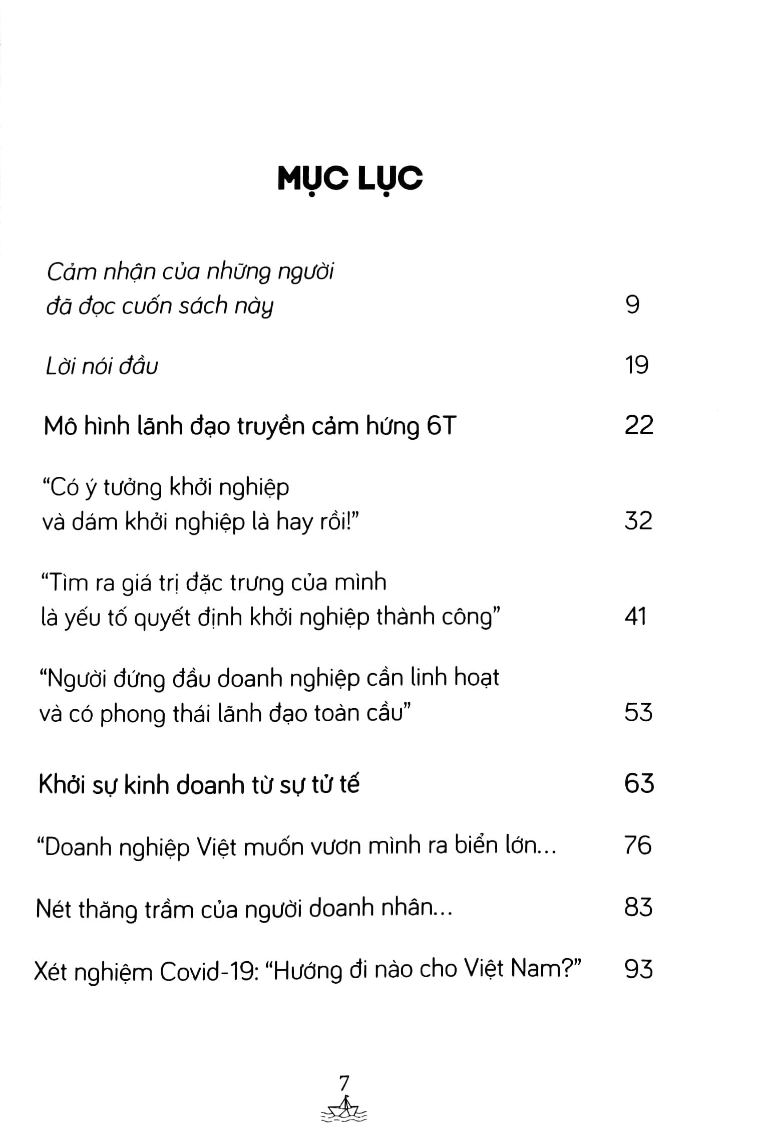 "Tôi tin, Lãnh đạo truyền cảm hứng không chỉ có ích cho các bạn trẻ, cho những người khởi sự kinh doanh, mà nó còn có thể truyền cảm hứng cho bất kỳ ai muốn lựa chọn giá trị cho bản thân, quyết định hướng đi riêng và trở thành một – ai – đó trong xã hội ngày nay."