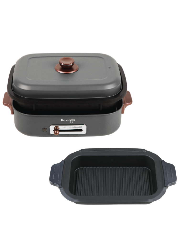 Nhằm đáp ứng sở thích ăn các món nướng và lẩu tại nhà mà không chứa nhiều dầu mỡ và an toàn cho người sử dụng. đã cho ra đời những mẫu Lẩu điện phủ gốm Ceramic đa năng hiệu cao cấp tại thị trường Việt Nam. Lẩu điện phủ gốm Ceramic đa năng Kuvings 2 trong 1 KMG-200B được sản xuất từ linh kiện cao cấp có độ bền cao không chứa chất độc hại. Thiết kế nhỏ gọn, sang trọng, hiện đại và an toàn theo phong cách “Newtro”.