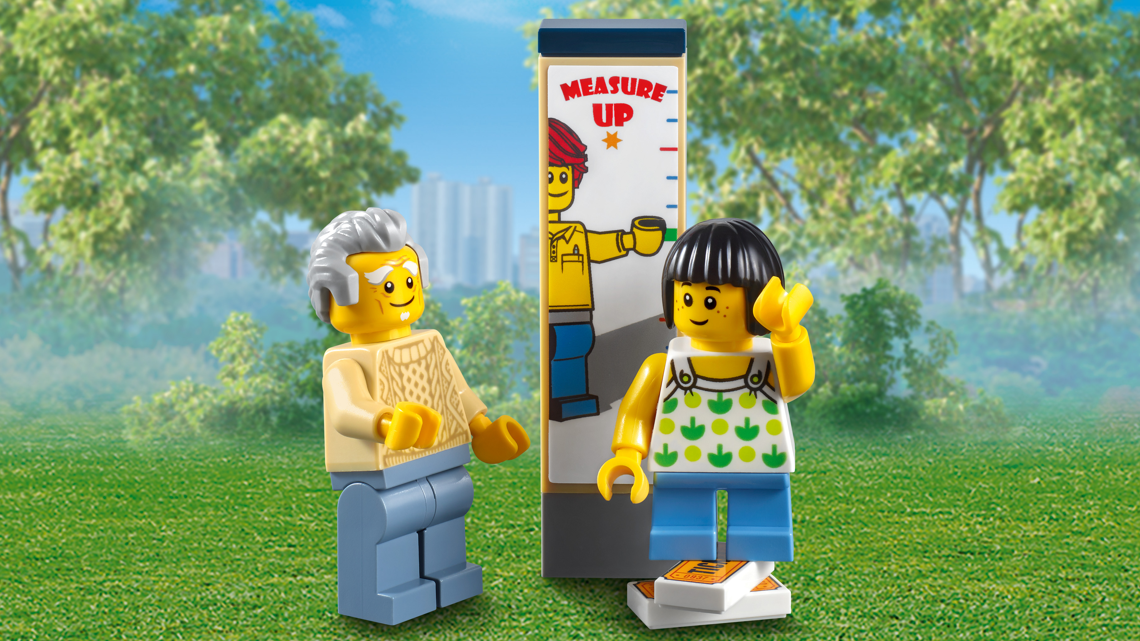 - Bao gồm 11 nhân vật nhỏ: một người bán kẹo bông, 2 người phục vụ đi xe, 2 ông bà với cháu gái của họ và 5 người cưỡi ngựa. 8 trong số các nhân vật nhỏ này có các đầu có thể đảo ngược để hiển thị các cảm xúc khác nhau.