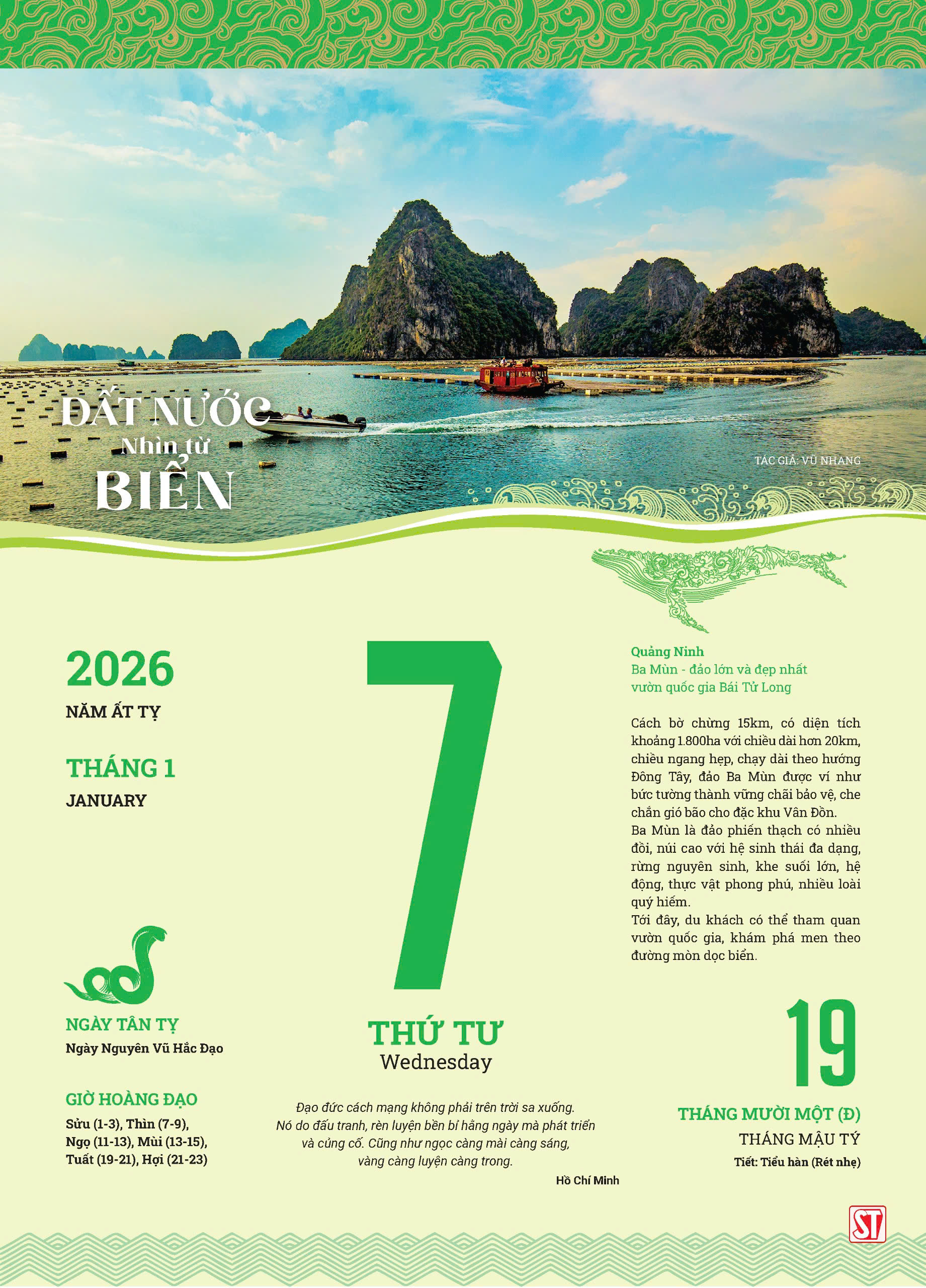 Lịch Blốc 2026 “Đất nước nhìn từ biển” Bộ lịch này tập trung vào vẻ đẹp của các vùng biển đảo Việt Nam, nguồn tài nguyên thiên nhiên phong phú và cuộc sống sôi động