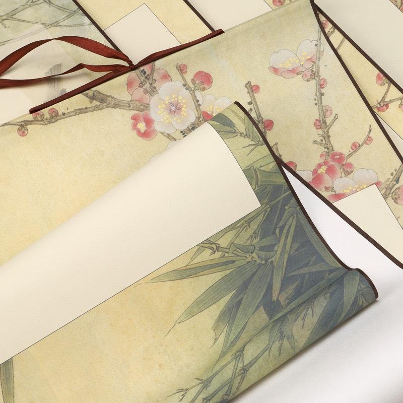 ✨Liễn giấy bồi trục treo in viền hoa dùng để viết thư pháp