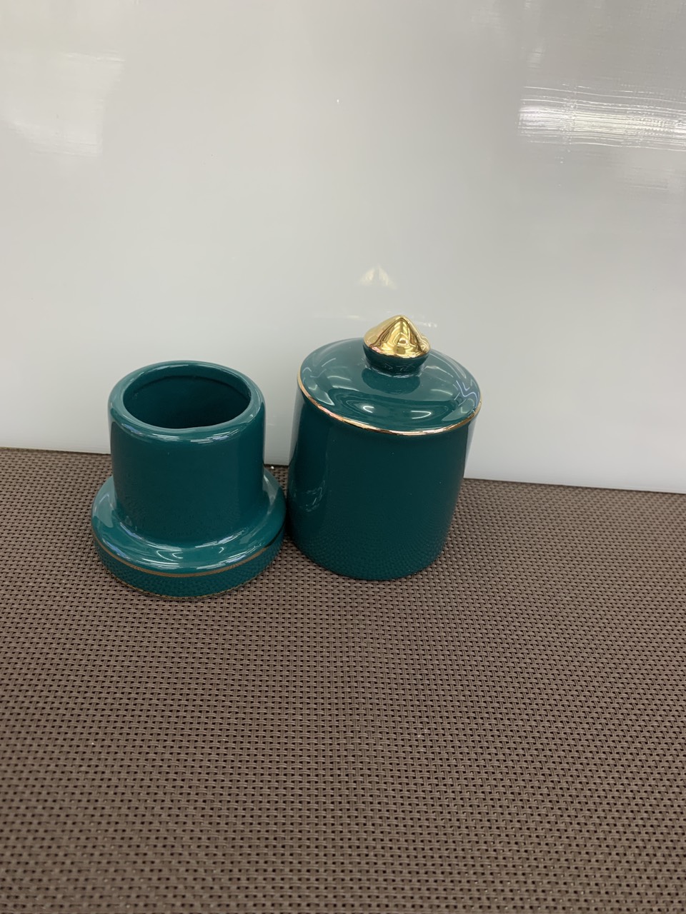 ✨LỌ ĐỰNG TĂM BÀNG SỨ CAMELIA MÀU XANH CỔ VỊT CAO CẤP - ANTH417