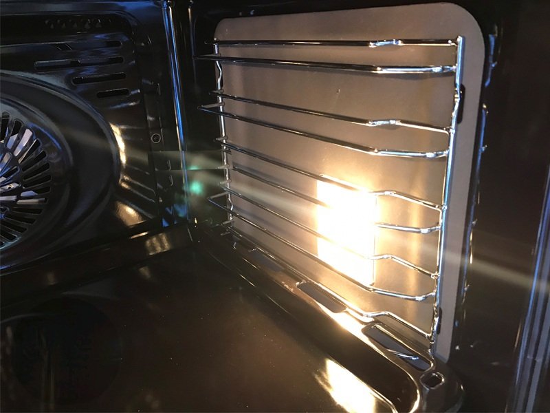 cửa lò bằng kính cường lực 3 lớp, chịu lực và nhiệt cao để đáp ứng nhu cầu nấu nướng của gia đình bạn, do lò có nhiệt độ khá cao 250 độ C với các loại kính thường sẽ không chịu được ở mức nhiệt độ trên và dễ bị sock nhiệt dẫn đến rạn nứt. Bên cạnh đó chức năng đối lưu giúp thức ăn chín đều hơn mà không cần phải trở mặt thực phẩm, các món bánh khi ra lò sẽ có màu vàng óng và phồng hơn với đặc biệt với shuffle, cupcake, waffle...