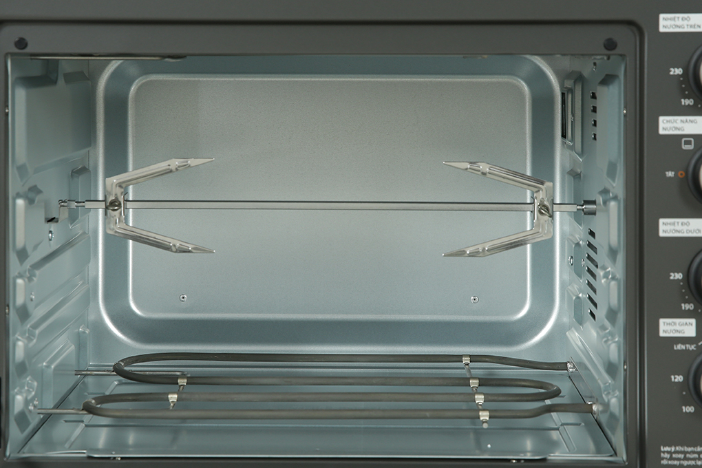 - Xiên nướng quay 360°, giúp thực phẩm chín đều mọi góc độ. Phụ kiện kèm theo sản phẩm Bao gồm: khay nướng, vỉ nướng, xiên quay, tay cầm lấy khay/vỉ nướng, tay cầm lấy xiên quay. Lưu ý khi sử dụng lò nướng: