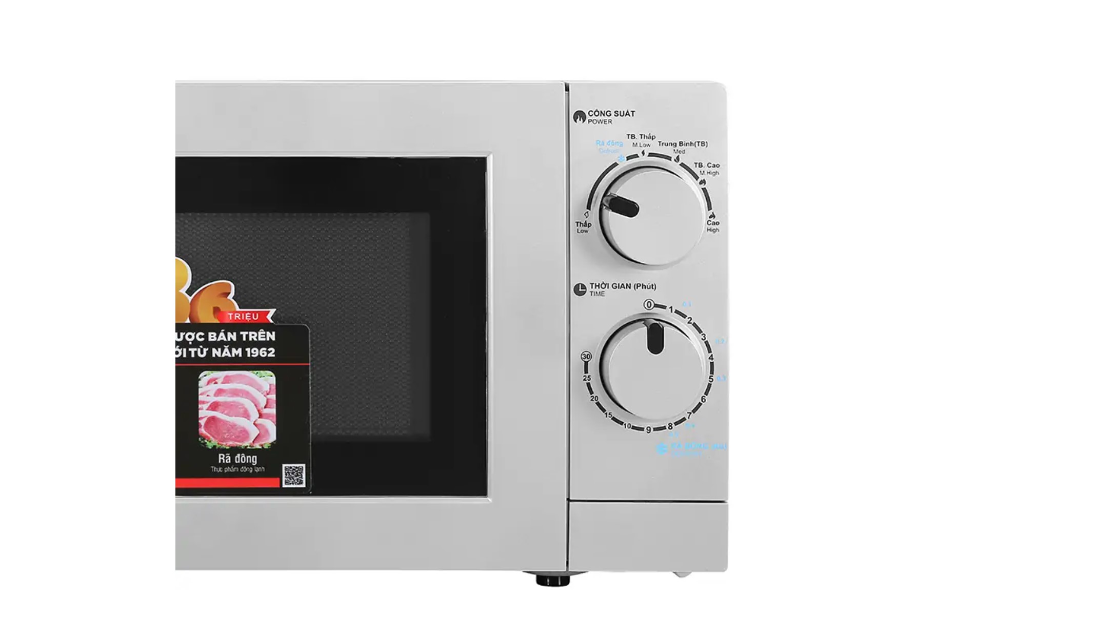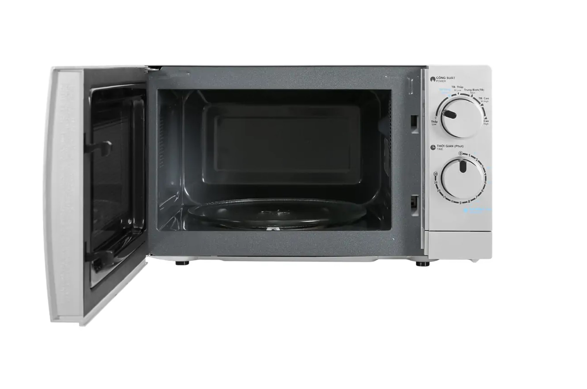 Tính năng nổi bật : – Bảng điều khiển cơ học dễ dàng sử dụng – 6 mức công suất linh hoạt cho ngưởi sử dụng – Tích hợp chức năng nướng tiện dụng – Thiết kế sang trọng hiện đại.   THÔNG SỐ KỸ THUẬT Đường kính đĩa 24,4cm Công Suất Đầu Ra (vi sóng) 700W Công Suất Đầu Vào(vi sóng) 1100W Điện Áp 220v-50hz Dung Tích Lò Vi Sóng 20L Trọng lượng khoảng 10,5 kg Công Suất Nướng 720W Kích thước bề ngoài (cm) 47 x 38 x 28.5