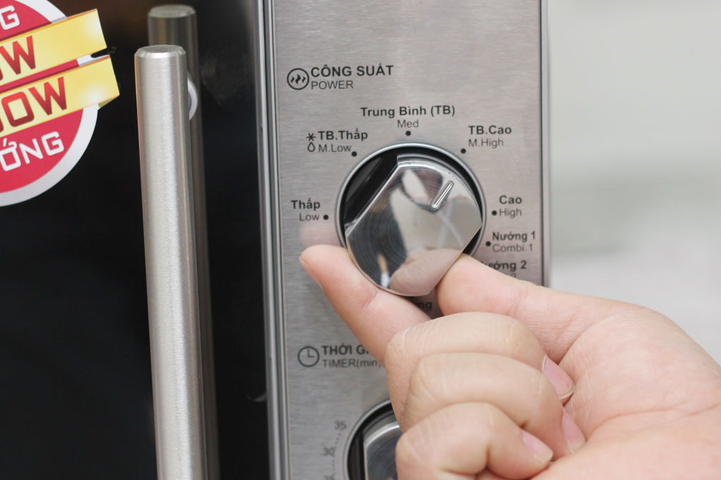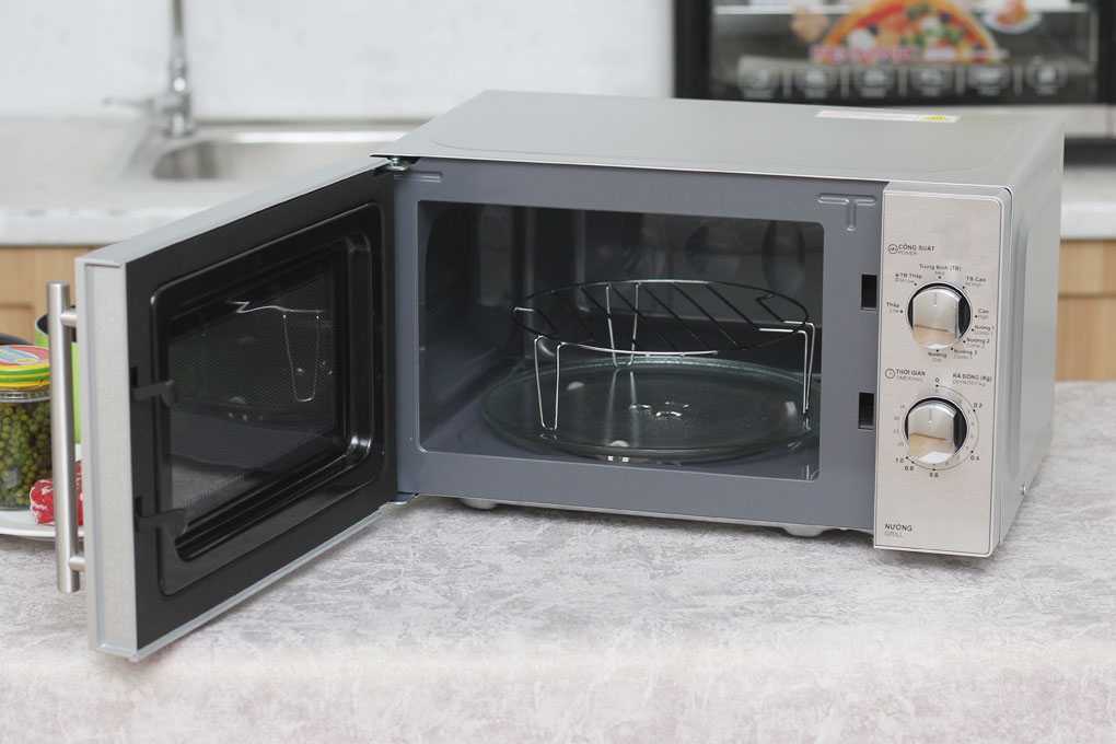 Lò vi sóng có 5 mức công suất khác nhau, trong đó công suất vi sóng là 800W và công suất nướng là 1000W giúp bạn hâm nóng và nướng chín thức ăn một cách nhanh chóng, dễ dàng.